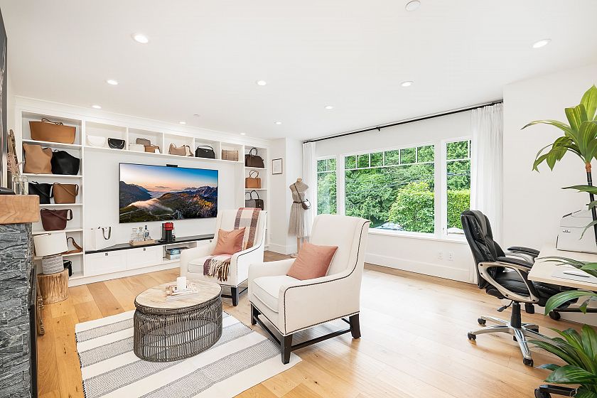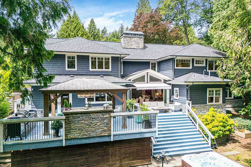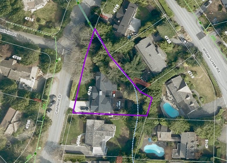 HOME WAS COMPLETELY REBUILT IN 2016 USING A SMALL PORTION OF THE FOUNDATION OF THE ORIGINAL HOME BUILT IN 1962. This custom-built home blends elegance and comfort with a thoughtfully designed 2 level layout. The main floor features 2,219 sq. ft. of open concept living flowing to a private, park-like patio and creekside yard. The stunning primary suite includes a luxurious ensuite, sitting area, and walk-in closet. Upstairs offers 4 bedrooms, a media room with balcony, library/office with fireplace, and gym. This is the ideal home for a growing family. Nestled on a 13,940 sq. ft. lot in the heart of Caulfeild, just steps to Caulfeild Elementary, Rockridge Secondary and Caulfeild Village shopping.
