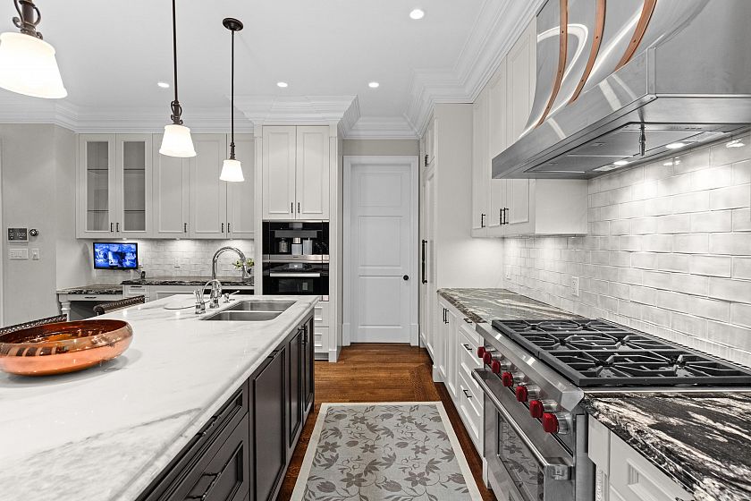 Located in Point Grey, step away to Locarno Beach, sitting on a 9000(60 x 150) sqft lot. This spectacular home offers 5283 sqft of spacious floor plan with attention to detail throughout. Total of 5 bedrooms and 6 full bath/ 2 half bath. Second floor has three ensuites bedrooms, north facing master bedroom with beautiful mountain, water and city view. Den on the main floor includes a full bath which can be turn into a bedroom. Functional layout, H/W flooring, wok kitchen comes with high end appliances, HRV, A/C. Basement with home theatre, huge recreation room & 2 guest bedrooms. 3 car garage. School catchment: Queen Mary Elementary & Lord Byng Secondary.
