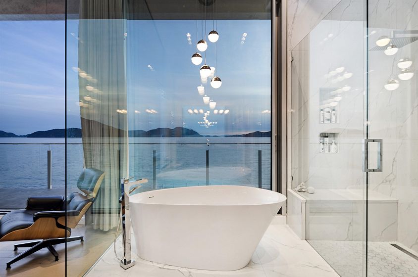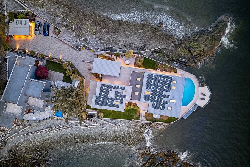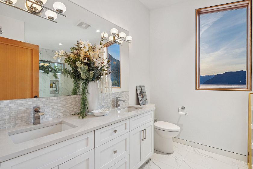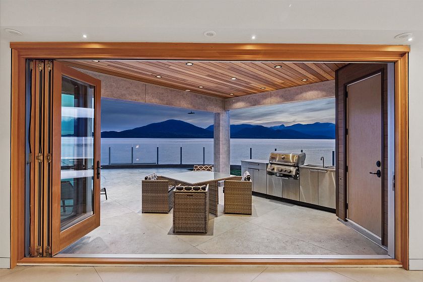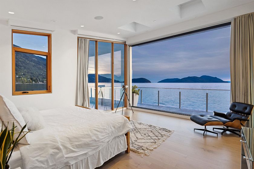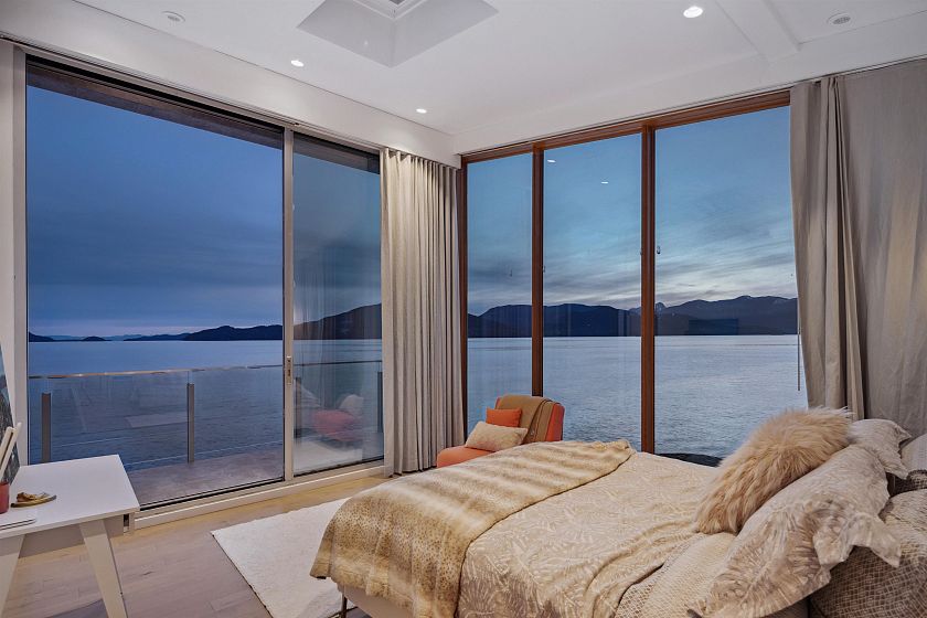 TRULY, ONE OF A KIND PROPERTY! This 5,000 sq. ft. dream home is one of the most unique properties in West Vancouver. Set at the end of a quiet road, this WATERFRONT peninsula has nearly 400 feet of shoreline that wraps around the home and its fortress-like concrete foundation walls! Enjoy the heated oceanside swimming pool & secluded beaches while watching captivating ocean wildlife. The views & sunsets of Howe Sound, the islands & beyond are magical. This home was built 4 years ago, constructed of steel & glass & the latest technology. Massive walls of windows to maximize the views from every angle. 5 bedrooms & 5 baths, very well equipped gym & about 3,000 sq. ft. oceanside terraces, gardens & lawn. Absolutely stunning opportunity for the most discerning buyer. Balance of home warranty.