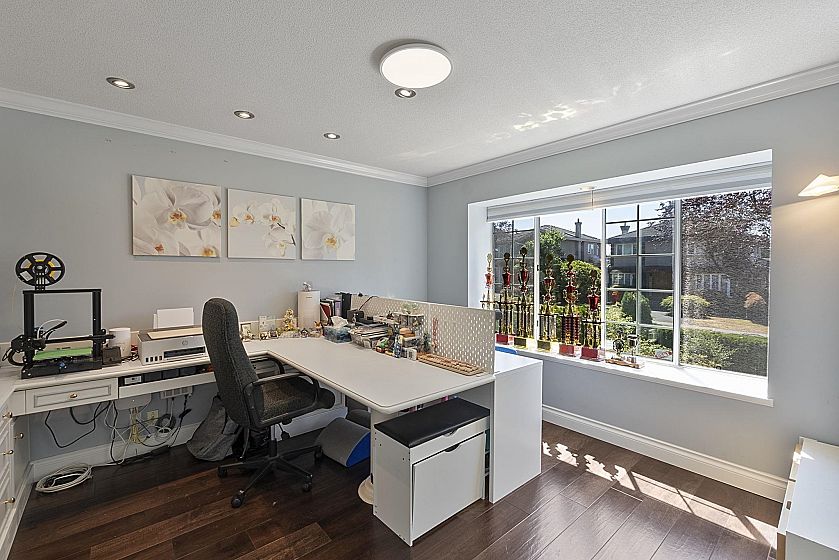 Welcome to this meticulously maintained, over 3,450sf family home, ideally situated on the high side of a quiet street in Vancouver's prestigious South Granville neighborhood. This elegant residence boasts 6beds & 5baths, offering refined comfort & a practical design. The heart of the home is a beautifully updated gourmet kitchen (2018), featuring top-of-the-line Wolf, Dacor, & Bosch appliances, complemented by granite countertops & luxury vinyl plank flooring installed in the same year. Comfort is ensured w/ AC, while the spa-like primary ensuite & steam bath provide a luxurious retreat. Additional features include custom built-in furniture in the den, expensive drapes, & a large 3-car garage. School catchment: Dr RE McKechnie Elem & Magee 2ndary.