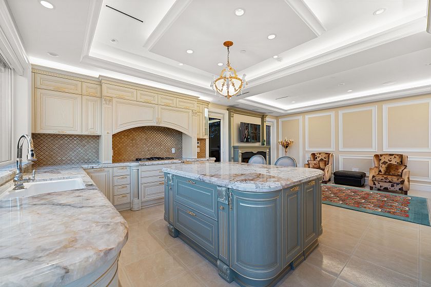 This Ultra Luxurious 3 lvl 4645 sqft West Vancouver Parisienne Masterpiece with Beautiful South facing Ocean Views was Built in Dec 2020 on a Lg private 8448 sqft Garden Oasis perched on the high quiet side of Mathers Ave. SHOW HOME NEW condition featuring 5 bedrooms (all ensuited) 6 bathrooms, 2 Laundries, 2 kitchens, 2 Fireplaces, office & Media rm. Exemplary details throughout. Magnificent millwork, wainscoting, imported bespoke light fixtures & chandeliers with 24K gold leafing, Versace designer floors, triple glaze windows. Custom EUROHOUSE ITALIAN kitchen by CUCINE LUBE & MIELE appliances. Hardwd & Tile Inflr Radiant heating, Marble Countertops, Back up Generator, A/C, remote blinds, EV Charging. 1000 sqft of Ocean view terraces. Prime Dundarave location. Open House Sunday Oct 26 2-4