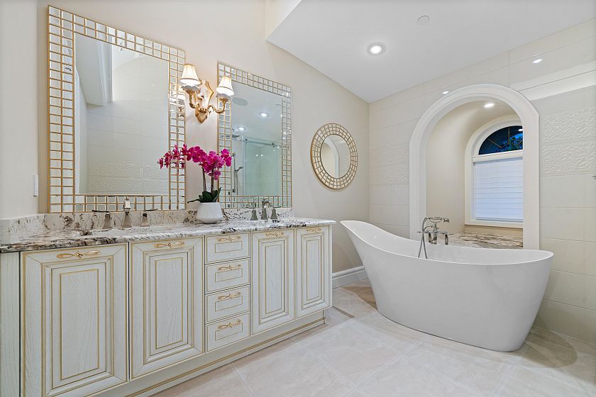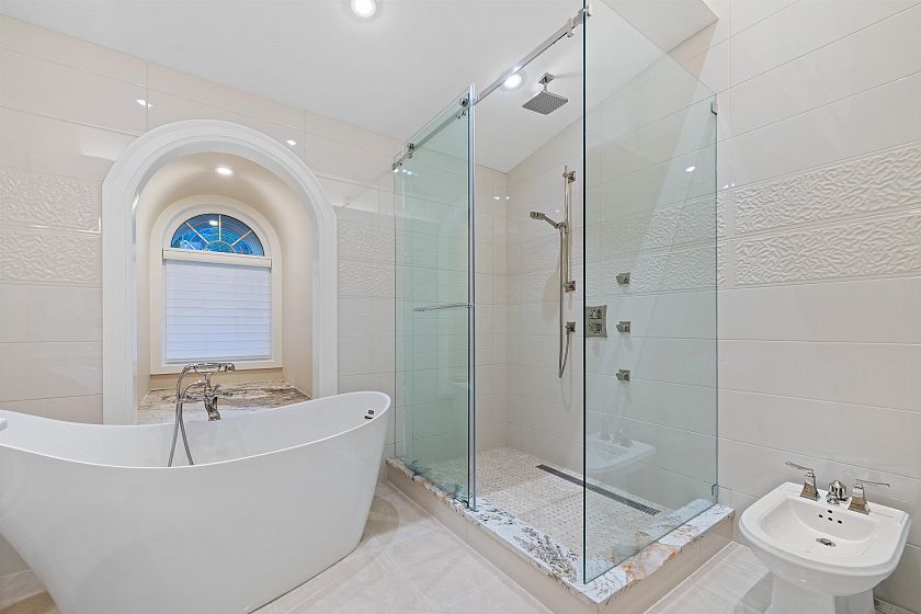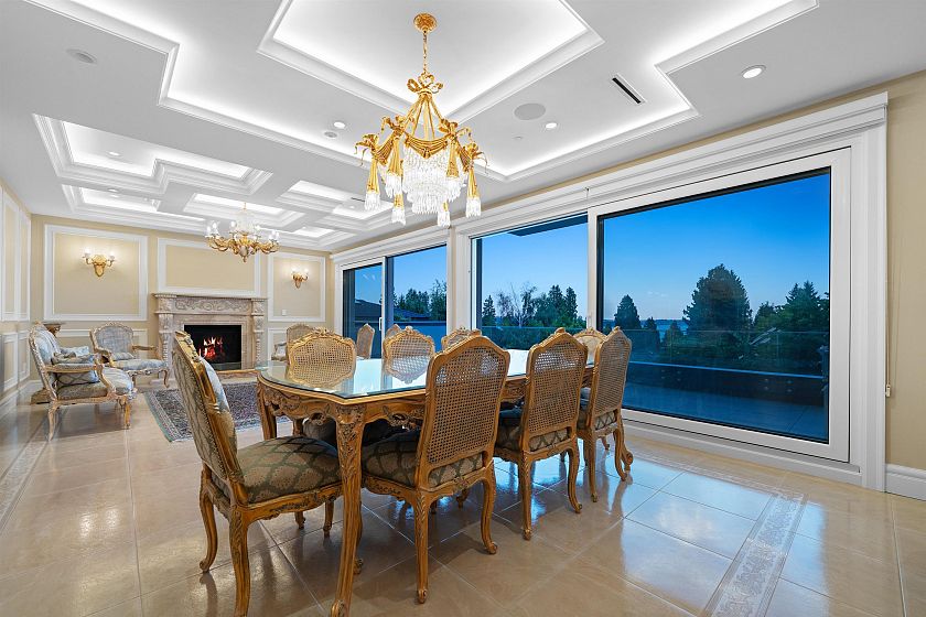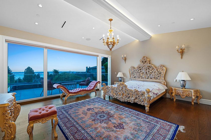 This Ultra Luxurious 3 lvl 4645 sqft West Vancouver Parisienne Masterpiece with Beautiful South facing Ocean Views was Built in Dec 2020 on a Lg private 8448 sqft Garden Oasis perched on the high quiet side of Mathers Ave. SHOW HOME NEW condition featuring 5 bedrooms (all ensuited) 6 bathrooms, 2 Laundries, 2 kitchens, 2 Fireplaces, office & Media rm. Exemplary details throughout. Magnificent millwork, wainscoting, imported bespoke light fixtures & chandeliers with 24K gold leafing, Versace designer floors, triple pane windows. Custom EUROHOUSE ITALIAN kitchen by CUCINE LUBE & MIELE appliances. Hardwd & Tile Inflr Radiant heating, Marble Countertops, Back up Generator, A/C, remote blinds, EV Charging. 1000 sqft of Ocean view terraces. Prime location walk to TOP schools. Open House Sun 2-4