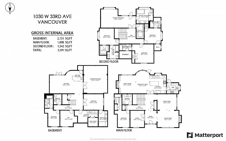 Luxurious Elegant Mansion nestled in prestigious Shaughnessy with VanDusen Botanical Garden's 55-acre wilderness at your South Bright Sunny backyard, on a large level 68*125 (8,505 sq ft) sun-drenched lot, and Mansion is over 5,590 sq ft bathed in year-round sunshine. Main floor features a large Foyer, living room, dining room, gourmet kitchen& wok kitchen, large patio, spacious office, family room, and a bedroom with ensuite. Gourmet kitchen feature with Sub-zero top appliances, European cabinetry and island with bar. Upstairs features 4 bedrooms and all with ensuite, include a large master ensuite walk in closet, and a southern sunny large balcony. School Catchment: Sir William Osler Elementary & Eric Hamber Secondary.