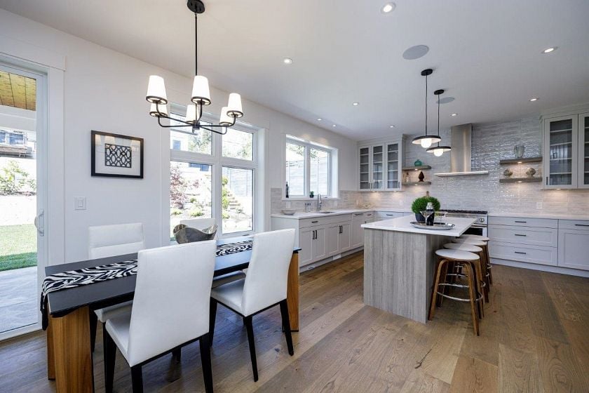 Absolutely stunning new Noort home in popular Calverhall. This 4,449 sq ft 3 level plan is located on a very bright and private 50 x 140 ft lot with lane access and separate double garage plus extra open spots. The custom design offers a modern, open plan with 2" x 8" exterior walls, expansive h/w floors, big gourmet kitchen with large island, impressive s/s appliances and large adjoining family room with sliders leading to a private covered patio. The upstairs offers 4 bedrooms including a gorgeous primary suite with one of the nicest ensuite baths you'll ever see. Rec room, guest bedroom and bath down for upstairs plus a separate self contained 2 bedroom legal suite. Lutron lighting, AC and more. OPEN SAT NOV 15th 2-4 PM.