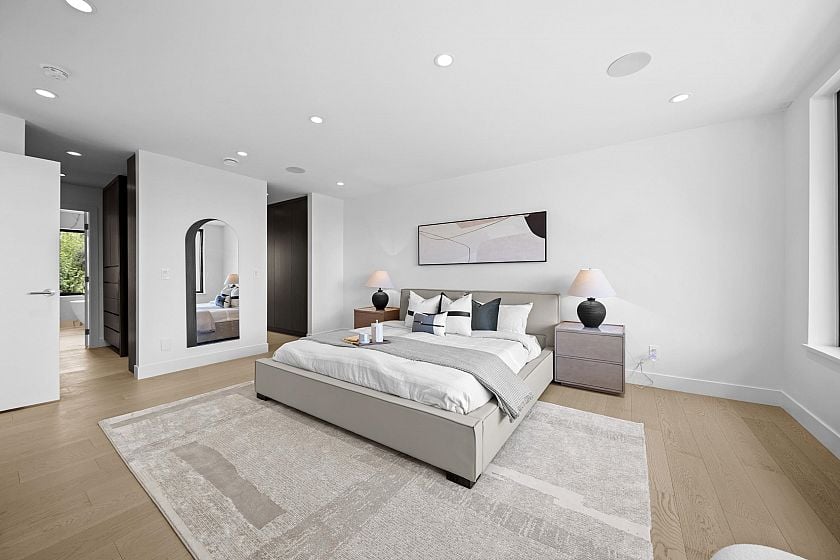 NEW. MODERN. UNIQUE. Custom built by award winning Marble Construction, this modern home offers the size of a 3 storey without the basement hassle! Located on a quiet cul-de-sac with over 11,500 sqt flat lot, it features an open concept layout, HIGH CEILINGS EVERYWHERE, a double height foyer, bedroom on main w bathroom & 4 bedrooms upstairs. Enjoy south facing exposure, mountain views, and peek-a-boo downtown views. Oversized European aluminum windows and doors bring in natural light and connect to a huge backyard perfect for kids. Situated in top school catchments in a unique, quiet location. It comes with 2-5-10 home warranty and offers unique features you won't find in other houses in the neighbourhood. Truly exceptional family home, thoughtfully designed with functionality in mind.