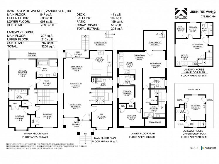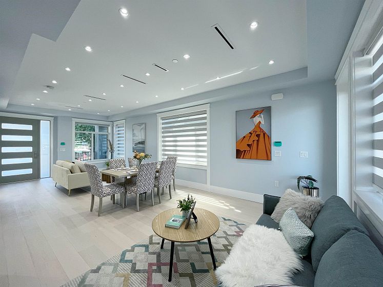 Primary Renfrew Height, South facing flat lot on treelined quiet street, quality craftsmanship by experienced expert. Beautiful North-shore mountain and city view. Practical and Open layout for the main floor, large Den can also be a bedroom for senior with a Full bath. Upper has 3 large bedrooms and 2 baths. Large size master bedroom that can enjoy amazing view of city downtown and mountain. Basement has one legal 2 bedroom suite with 2 full baths (option to have a separate studio). Laneway has large bedroom with ensuite full bath upstairs and a room and full bath down. One of the Best Central location in East Van, walk to Vancouver Christian, Gladstone Secondary, skytrain station, superstore and all the other shops and restaurants.open house: Sunday November 16th, 2-4pm.