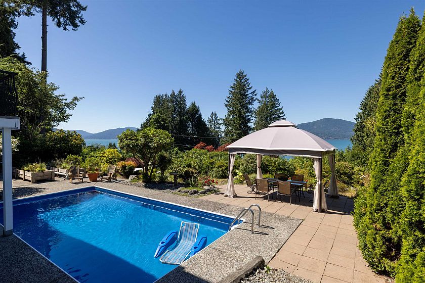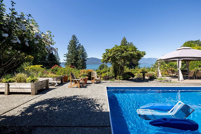 Welcome to 110 Seaview, a warm & welcoming home on Lions Bay's favorite street! Offering beautiful ocean views, ample garden & lawn, a refreshing swimming pool & all within minutes of the beach, this is the ultimate in Westcoast living. 4 bdrms. up, + 1 down, 4 bathrooms, open plan LR/Dining, generous kitchen/eating area, S/S appliances, ample cupboards & counters. Walk out access to large view deck perfect for entertaining. Family room & laundry complete the main floor. Beautiful hardwood floors throughout, woodstove up, F/p down. 2025 upgrades include roof, insulation, 11 windows, interior paint, pool liner, gazebo. Great separate area for extended family accommodation down. Easy driveway & large garage, this home is perfect for family living! Open Sun, Aug 31, 2-4