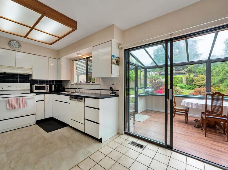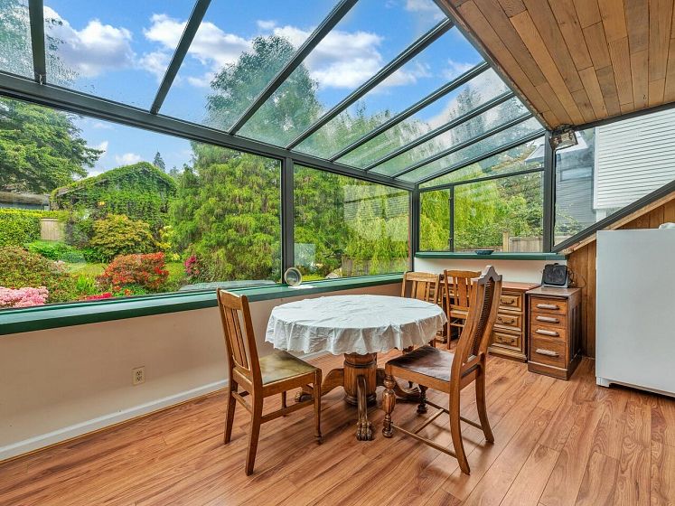 Located in a quiet area of the popular Ambleside neighbourhood. Beautiful large lot (50 x 150 = 7500 sq ft) lot with a variety of perennials and flowering shrubs. Zoning (RS5) allows a secondary suite and a coach house. Front porch offers a partial City view and a glimpse of the water. Short walk to Ambleside shops and restaurants. Primary bedroom on the main floor. Solarium off the kitchen overlooks a beautiful and private backyard.