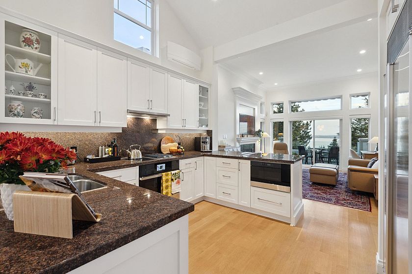 Nestled in a peaceful cul-de-sac, this beautifully updated detached home offers a rare opportunity for effortless living in one of West Vancouver’s most desirable areas. Expansive living spaces on the upper floor and sweeping ocean views, perfect for entertaining, this is the perfect blend of comfort and style. This home enjoys a serene private forested backdrop with a lush greenbelt. The oversized 7500 sq ft, low maintenance lot is one of the largest in the community. Meticulously renovated: new roof, new windows, heat pump/mini-split A/C, custom closets, a renovated kitchen with new appliances, and a remodeled master ensuite. Additional upgrades include new laundry, lighting, doors, blinds, and a renovated garage with EV charger. Move-in ready, shows beautifully!