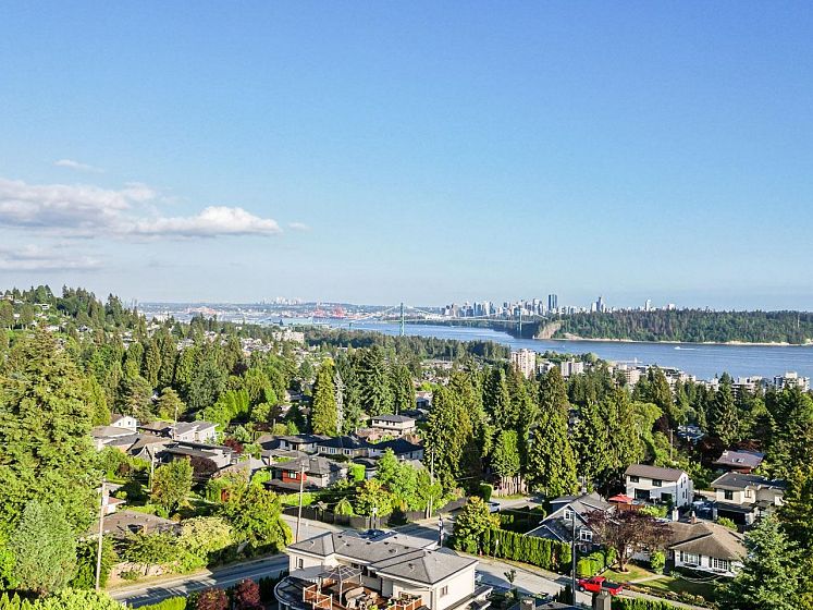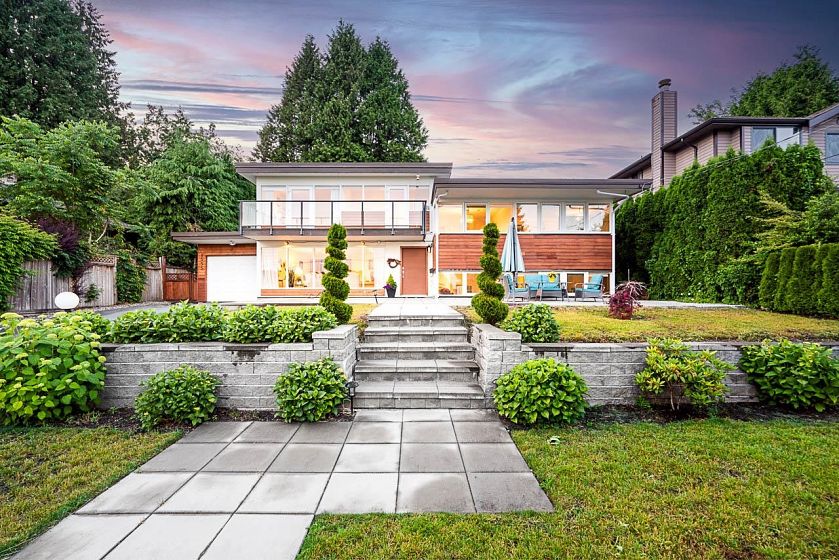 Beautifully remodelled Ambleside home with unobstructed ocean and city views, designed by Ron Thom. This bright 3,000+ sqft residence features 6 bedrooms (4 up) and 3 bathrooms with a spacious open-concept layout. Recent upgrades include engineered wood floors, new cabinetry, new appliances, windows, Interior & exterior doors, and updated bathrooms. Optional suite off the main level with separate entrance—ideal for rental income or guests. Set on a private cul-de-sac with lane access on a 9,000 sqft lot. Walking distance to WV Secondary, Ridgeview Elementary, and Ambleside’s shops, amenities, and transit.