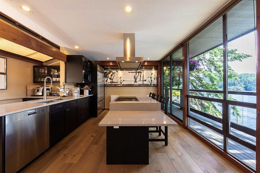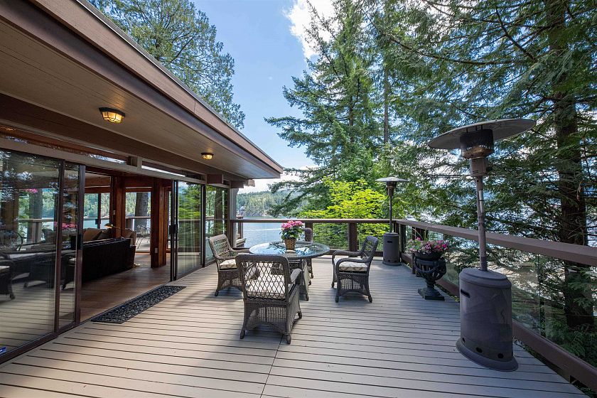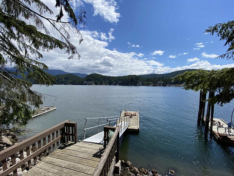 Waterfront home with Irreplaceable private Dock and parcel water area 867 square metres , Architect-designed by Paul Merrick, this stunning home sits on a private cul-de-sac along the Deep Cove shoreline with breathtaking ocean views. Floor-to-ceiling windows bring natural light and panoramic water views from every window. Solid wood beams in three level. The house has done renovation in 2013 with many, including all the kitchen & appliance, floor, bathroom, new heating system...Over 1,650 sqft of decks surround the house— perfect for entertaining. The spacious primary suite with its own large & covered deck ideal for yoga or workouts. The sitting room that can serve as a 4th bedroom or office. Level driveway with single garage and double carport. Lifestyle PLUS!