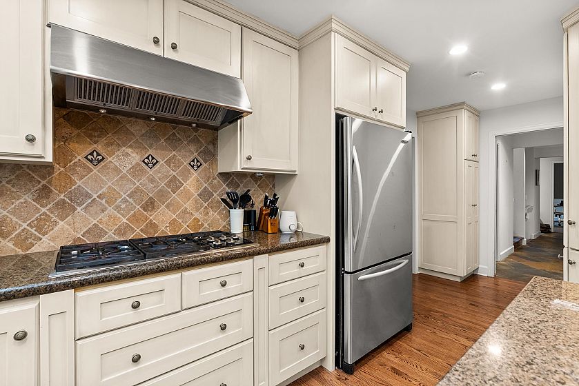Exceptional family home, tastefully renovated in 2006, offering approx. 3,500 sqft across three levels. The traditional layout includes 4 well-appointed bedrooms upstairs, highlighted by a luxurious primary suite with a walk-in closet and elegant ensuite. Main level features a welcoming foyer, formal living and dining rooms with large windows, rich hardwood and slate flooring, a gourmet island kitchen with breakfast bar, adjoining eating area, family room with coffered ceilings, fireplace and media centre, plus a private office, rec room, and oversized double garage. French doors lead to a beautifully landscaped 1/3 acre with serene patios and lush gardens. Walk to West Bay School, McKechnie Park, and Dundarave.