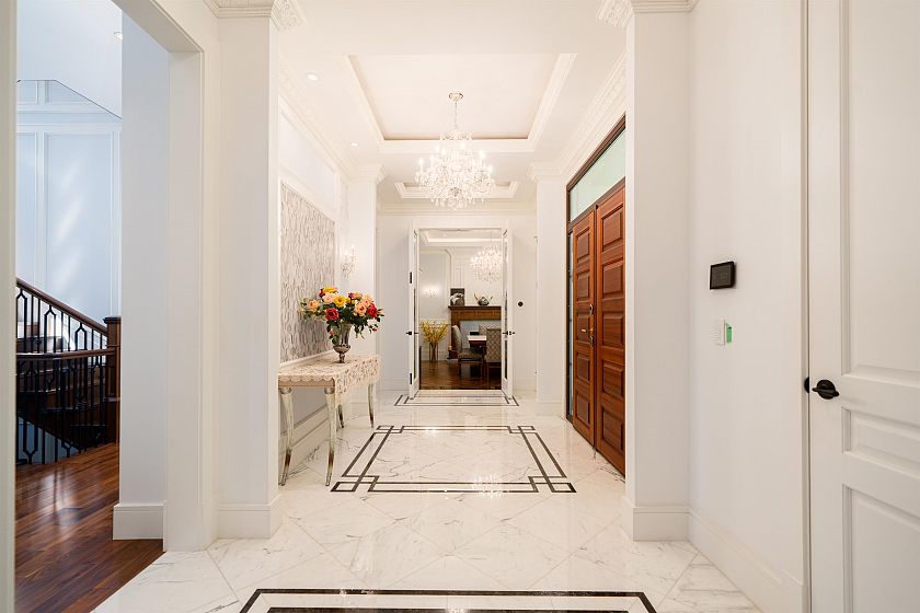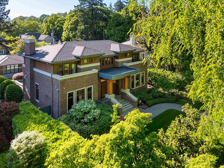 Iconic. Classic. Tailor-made. Boston/NY style Masterpiece crafted by elite team of world renowned architect/interior designer/master builder, blessed by Fengshui Master. Prestigious & picturesque Churchill St. 7400sf elegance on 13,276sf prpty. Large fml principle rms on main, wood panelled office, top-end appliances in both kitchens, gourmet kit w/ huge island. Family rm eclipse dr opens to a bbq deck w/built-in O/D kit & covered patio w/ F/P overlooking Zen koi pond & mature backyard gardens. 4 ensuited bdrms up, a library/open den, 2nd laundry rm; master bdrm has its own patio. Bsmt boasts a bowling alley sized rec rm, wet bar, wind cellar, prof. theatre, O/D water fountain, 2 bd, 3 baths & the main laundry. Bonus: a 540sf 1-lvl L/W home. 2 car garage w/parking pad.