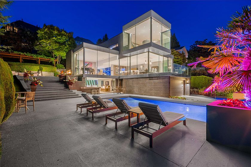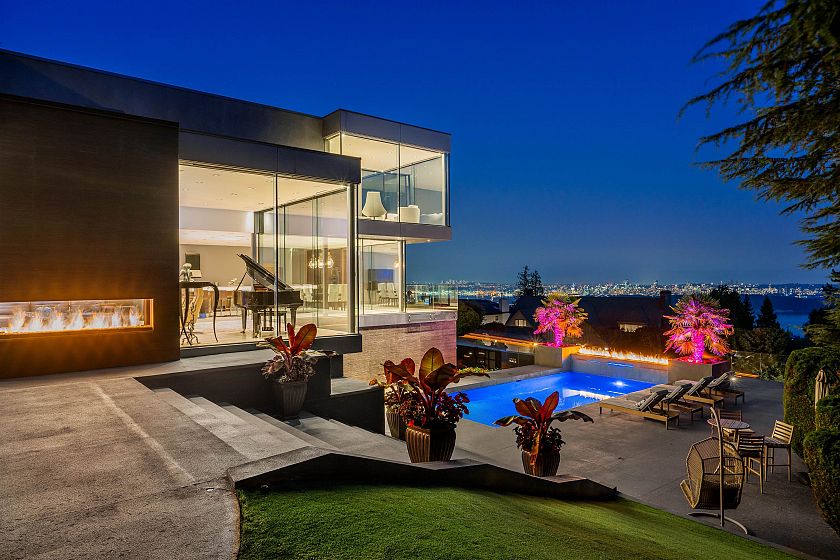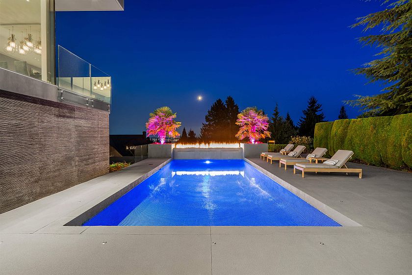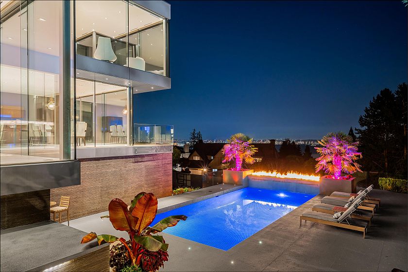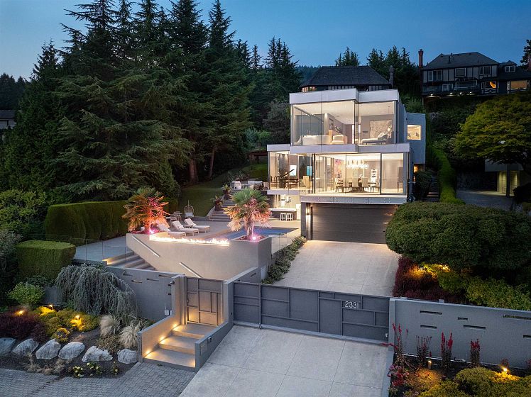 This brilliantly designed West Vancouver modern masterpiece is situated on a prized .45 acre estate property providing breathtaking views of the city and ocean. This one of a kind luxury residence offers approx. 5840 sq. ft. of living on 3 spacious levels and provides an indoor-outdoor lifestyle like no other incorporating every modern amenity one could dream of with comfort, elegance and absolute sophistication. Expansive principal living areas are ideal for entertaining and provide walk-out view-side terraces and access to a swimming pool with fire illumination all illuminated at night with dramatic effect. Luxury Features include Roberto Cavalli and Versace custom tiles, Italian Cabinetry, Lutron Home automation, air conditioning and a convenient 2 car garage.