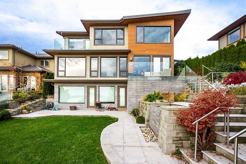 Situated on the 23rd block of Ottawa Street, this beautifully 2013-built home showcases stunning panoramic ocean views from all levels. The main floor features an open-concept layout with a modern kitchen, wok kitchen, and seamless access to a private back patio. A detached guest suite offers privacy for visitors or extended family. Upstairs boasts three bedrooms, each with its own ensuite, plus a full laundry room. The lower level includes a bedroom, media room, and a legal one-bedroom suite with kitchen and laundry - all enjoying ocean views. Flat front yard with pool potential. Close to top schools, shops, and the community centre, this is an ideal family home in sought-after Dundarave.