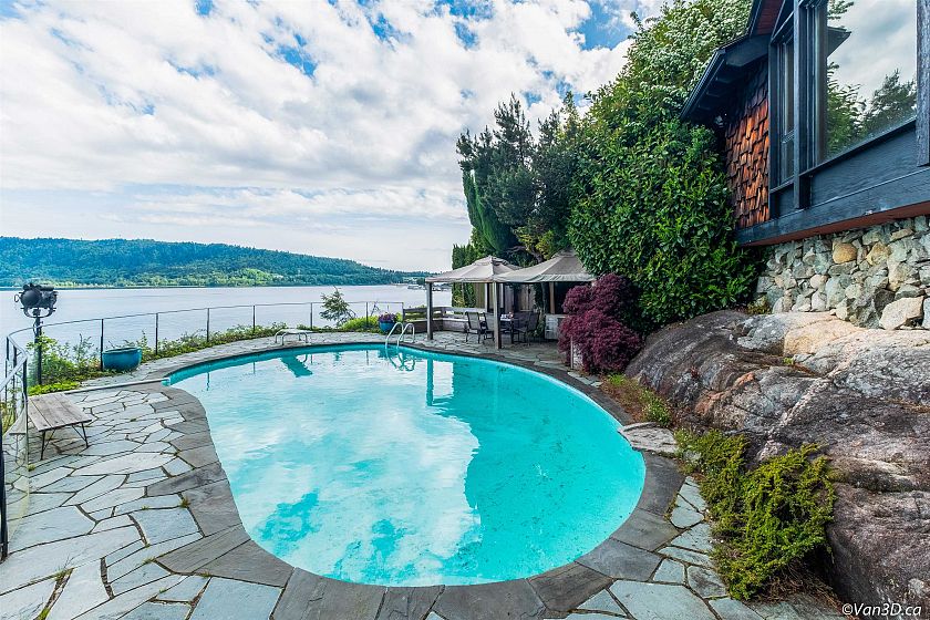 Panoramic ocean and mountain view of this waterfront property situated in the heart of Deep Cove with privacy and serenity. The property offers 8,213 sqft lot with a large swimming pool and outdoor cabana off the pool deck. Enjoy every sunrise, sunset & water sports. The property has exclusive dock.