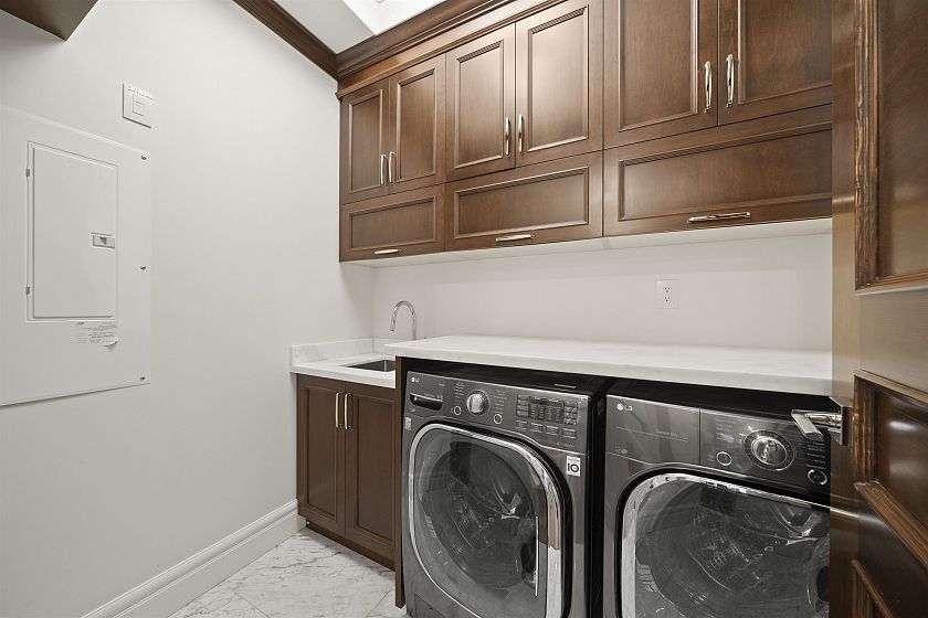 One-of-a-Kind Luxury Home in Prestigious South Granville Custom-built on a rare 59x135 (7,965 sq ft) flat lot along a wide, tree-lined street, this elegant 6-bed, 6.5-bath home features an Italian marble fireplace, grand spiral staircase, and premium finishes throughout. Enjoy Miele gourmet + wok kitchens, Control4 smart system, A/C, HRV, and EuroLine windows filling the home with natural light. The spacious family room opens to a covered patio and lush, park-like yard. Resort-style amenities include a home theatre, wine cellar, wet bar, sauna, and steam room. Steps to Crofton House, York House, Osler Elem, Eric Hamber, UBC, Oakridge, and transit.