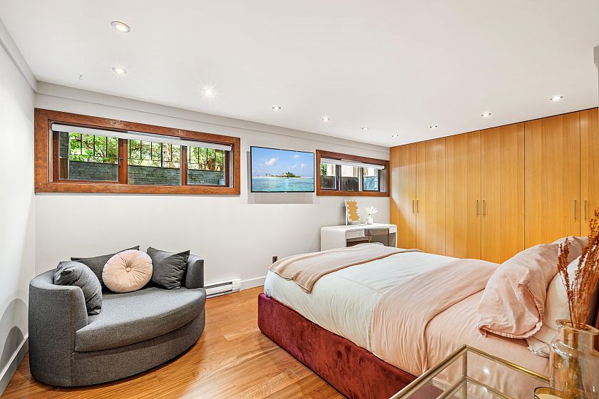 Exceptional 4 bed, 5 bath family home in the heart of Dundarave. This 2-level residence features an updated kitchen with stainless steel appliances, hardwood floors, and gas fireplace. The bright main floor offers open-concept living, dining and kitchen, with vaulted ceilings, 2 bedrooms and 2.5 bathrooms. The lower level includes 2 bedrooms, bathroom, a spacious rec room with wet bar, and a custom wine cellar. Enjoy the private yard with lush greenery and a patio perfect for entertaining. Unbeatable location just steps to bus stop, Irwin Park School, IGA, shops, and the beach.