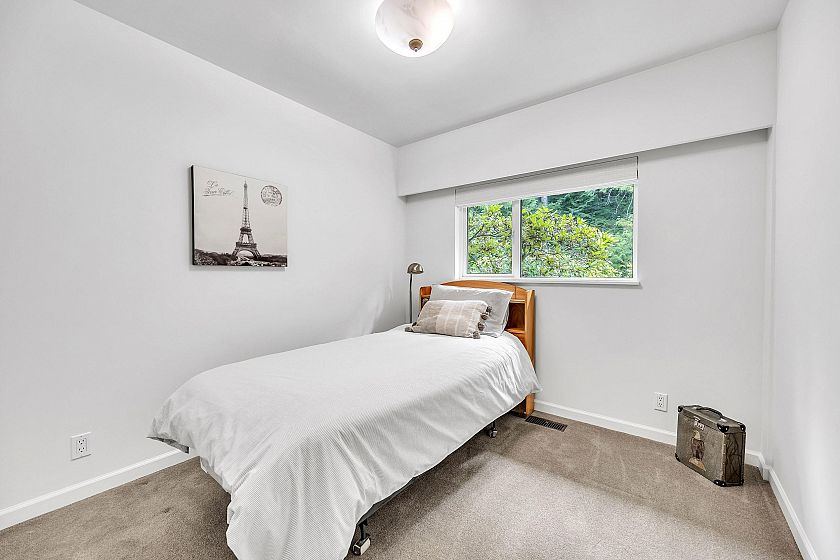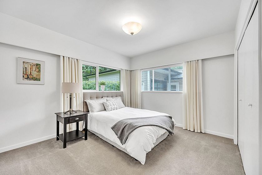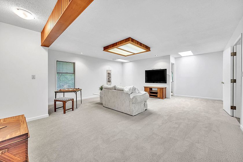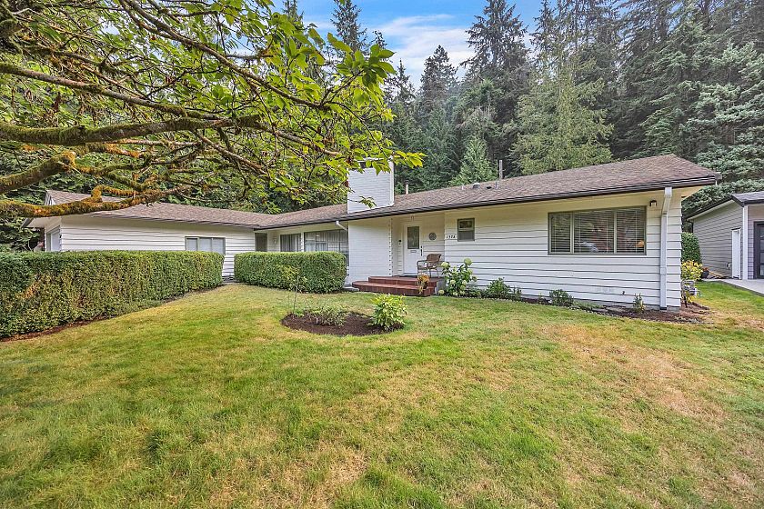 Mid-century modern rancher on a spacious, private, level lot with 2,069 sq.ft. of single-level living. This one-owner home offers 4 bedrooms and 2 bathrooms, with double glazed windows and skylights filling the interiors with natural light. The open living/dining area has a cozy gas fireplace, while a large family room adds flexible space for family or entertaining. The kitchen with stainless appliances flows easily to a sunny back patio with natural gas hookup—perfect for outdoor dining. A double garage provides ample parking and storage. Steps to trails and the Seymour River, and close to Ron Andrews Recreation Centre, Seymour Heights Elementary, and Windsor Secondary—this home offers a perfect blend of comfort, convenience, & North Shore lifestyle.