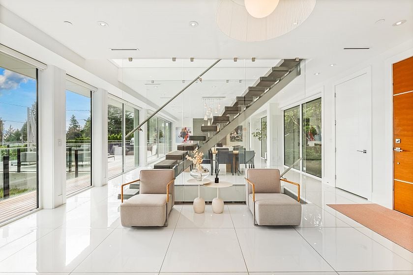 Don’t miss this stunning modern 4 to 5 bed, 6 bath home in Ambleside offering 4,936 sq. ft. of luxurious living on a 10,082 sq. ft. lot. Built with premium steel & wood construction, this residence features floor-to-ceiling windows & a seamless open-concept layout. The chef’s kitchen includes a 16-foot island, power cabinets & a full Miele appliance package. Upstairs offers 4 spacious bedrooms, laundry, & beautiful city & Lions Gate Bridge views. The primary suite boasts a spa-like ensuite, walk-in closet, & a large sun-filled deck. The lower level includes a media room, custom wine tasting lounge, gym or 5th bedroom, & mudroom with access to a 2-car garage. Radiant heat, A/C, & high-end finishes throughout. Steps to Ridgeview Elementary, West Vancouver Secondary & minutes to Collingwood.