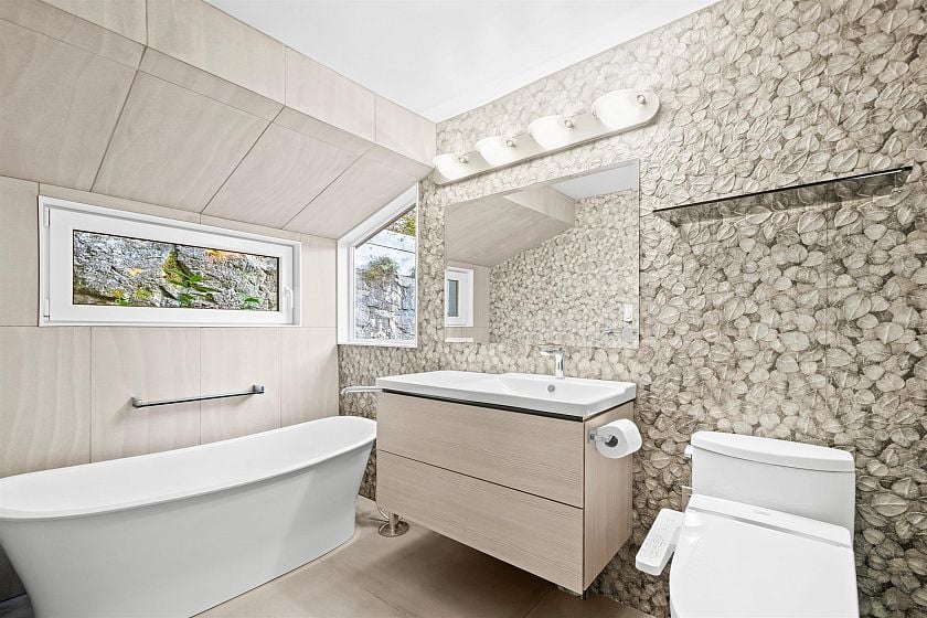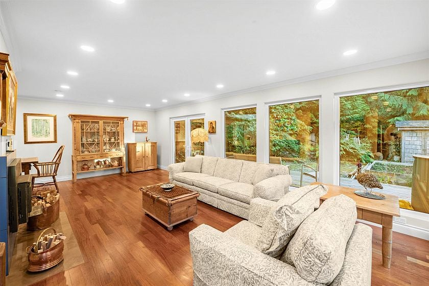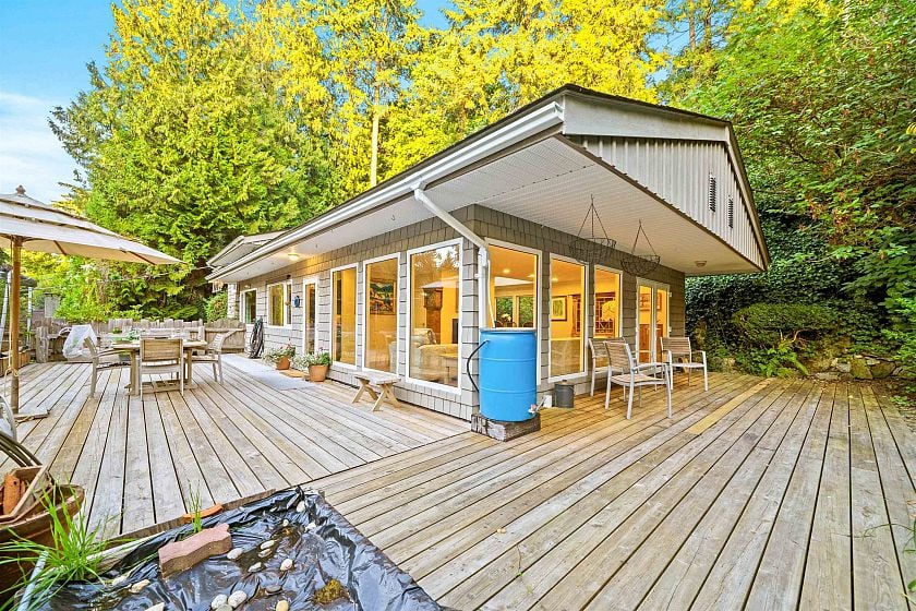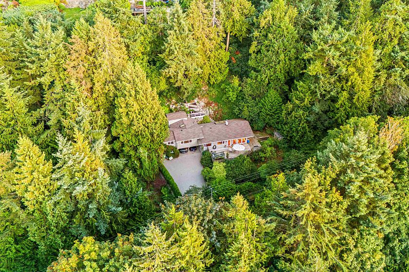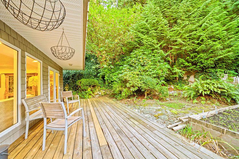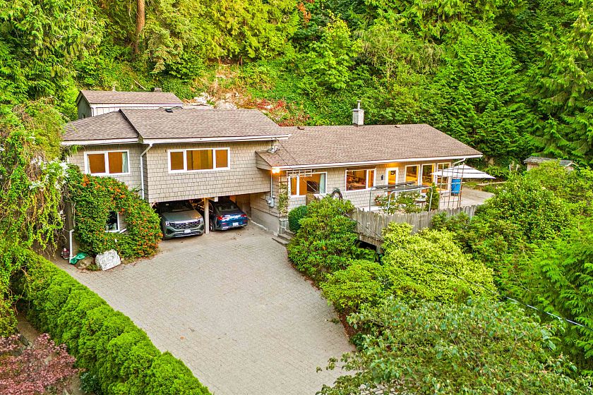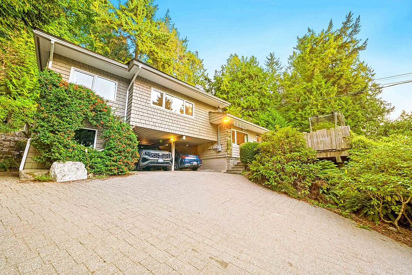 Just up from Bachelor Bay and around the bend from Whytecliff Park, this charming, updated home is move-in ready. Designed to embrace its natural surroundings, the primary bedroom offers a private outlook with French doors to the backyard, plus a spacious walk-in closet. A large front deck captures west-facing treetop views, while the yard and sunny veggie gardens create the perfect setting for outdoor meals. Lovingly cared for by the same owner for 20 years, the home features top of the line Euroline doors and windows, along with updated kitchen and bathrooms. Set well above Marine Drive, with ample parking and turnaround space for three cars at the top of the driveway, this home blends comfort, convenience, and West Coast charm.
