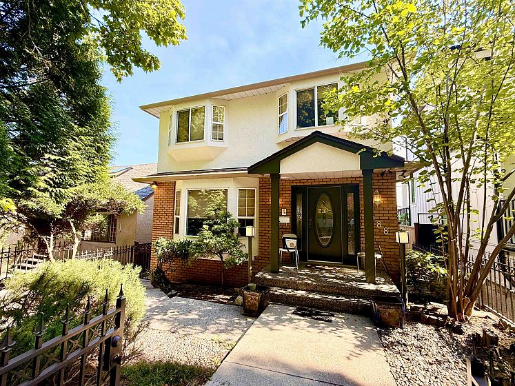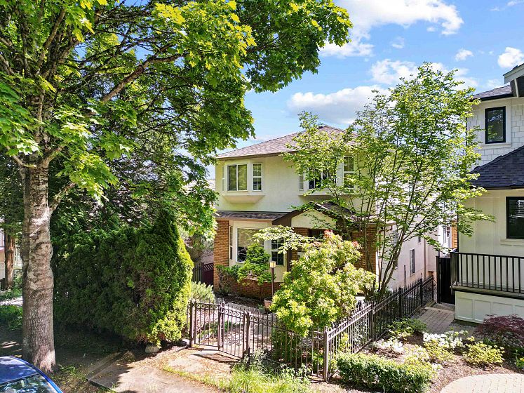 Phenomenal location & perfect for the family, this distinguished three-level home offers 4 spacious bedrooms and 4 bathrooms. Enjoy captivating views of the North Shore Mountains throughout. The main floor showcases rich hardwood flooring and an open-concept living and dining area, ideal for entertaining. The gourmet kitchen features a gas stove, cozy breakfast nook, and ample space for culinary inspiration. Relax in the light-filled conservatory or take in the scenery from the elevated back deck. A private bachelor suite on the lower level includes its own patio—perfect for extended family or rental opportunities. Spacious detached double garage and extra parking pad. Situated just steps from Queen Elizabeth Park, transit, and excellent schools.