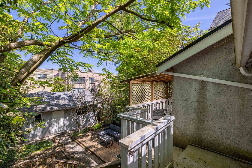 Rarely available 3 floor character home in Point Grey. This property boasts an ideal blend of family comfort and investment potential. The well-maintained 5-bedroom, 3-bathroom home is surrounded by gardens and a charming private terrace. Functional layout features two generously sized bedrooms and a bathroom upstairs, complemented by another bedroom on the main floor. Rich oak hardwood floors adorn the main level, where a cozy wood-burning fireplace graces the living room, a separate dining room invites gatherings, and a bright kitchen with an eating area leads to a spacious deck overlooking the private backyard. The lower level accommodates two bedrooms with a separate private entrance, complete with an eating area and laundry facilities, fully licensed airbnb generating great income.