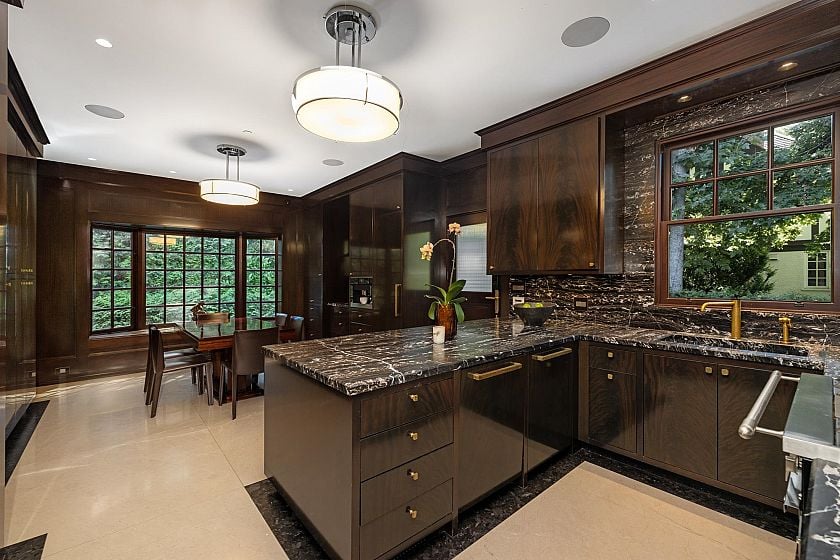 This extraordinary residence is the result of a 7-year, no-expense-spared restoration & expansion, rebuilt from the studs. The estate features Art Deco theme with the world’s finest imported materials incl. hand-finished ebony & crotch-wood mahogany cabinetry, rare book-matched marble, & bespoke stonework throughout. The chef’s kitchen boasts Italian imported solid stone counters, La Cornue & Thermador appliances, & full Miele guest kitchen suite. Every element is custom-crafted, from mahogany herringbone floors & marble entryways to English fireplaces, & French fixtures. The estate boasts ELAN smart home with security, mature landscaping majestic trees, & future-ready infrastructure incl 600 amp power. A rare opportunity where craftsmanship & luxury meet to create a compelling masterpiece