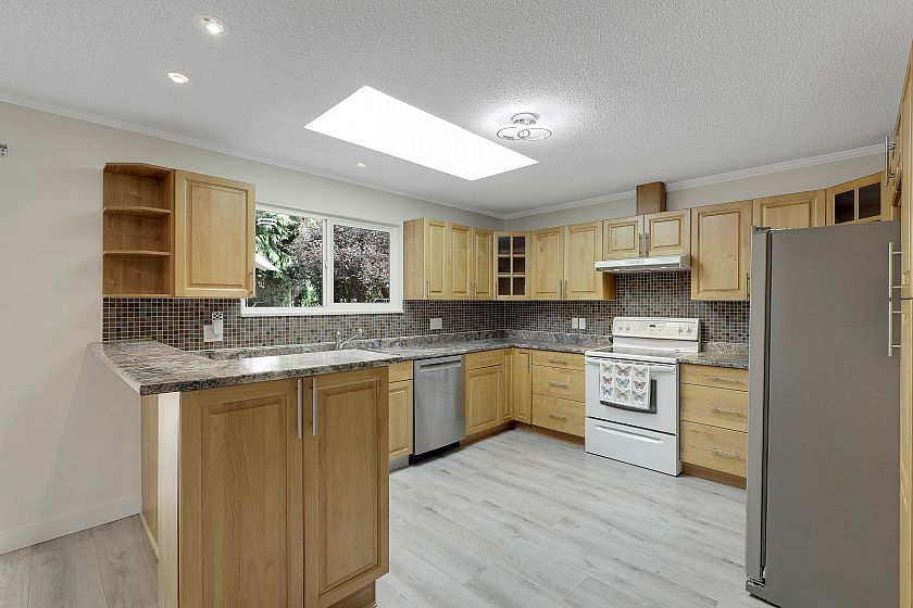 Welcome to this beautiful 3 level split home with 4 bedrooms, 2 bath and a large fully fenced backyard with water features and a gazebo for your enjoyment. The main floor features a large living room with a wood burning fireplace, dining room leading out to the garden & a kitchen with a breakfast bar. Top floor has 3 bedrooms and a 5 pc. bath. Master is on the lower floor with an en-suite facing the garden. New roof with skylight, new flooring, fresh paint, baseboards, vanity, light fixtures and so much more to list. One car garage for your convenience with additional parking in the front. One of a kind home with lots of charm and character. Walking distance to parks, trails, transit, schools & Lynn Valley Town Centre. A MUST SEE! OPEN BY APPOINTMENT ONLY.