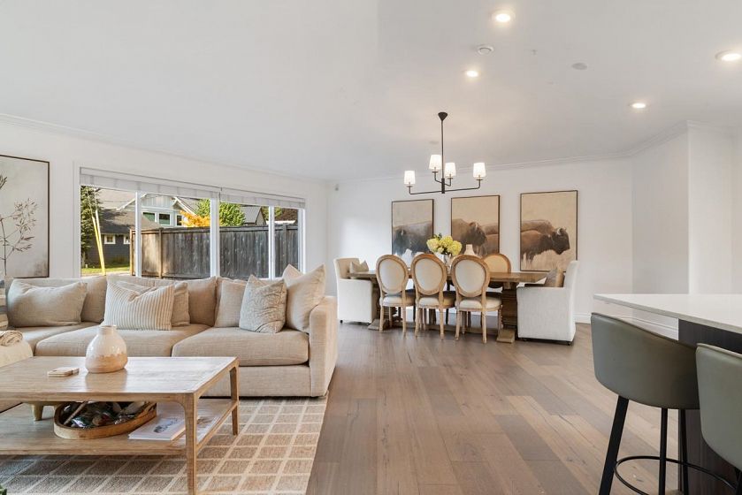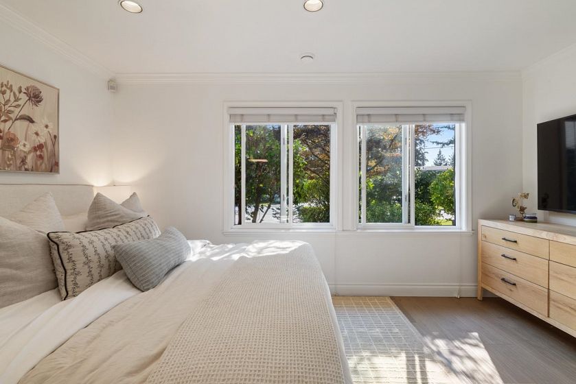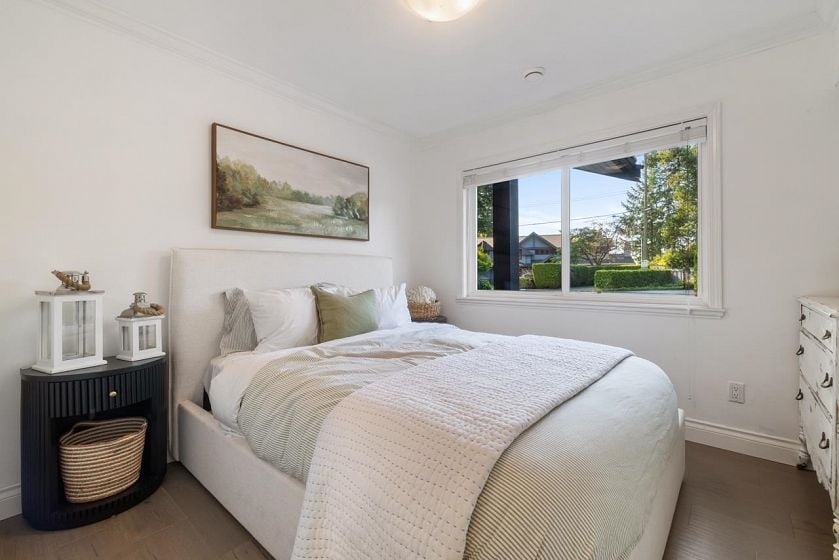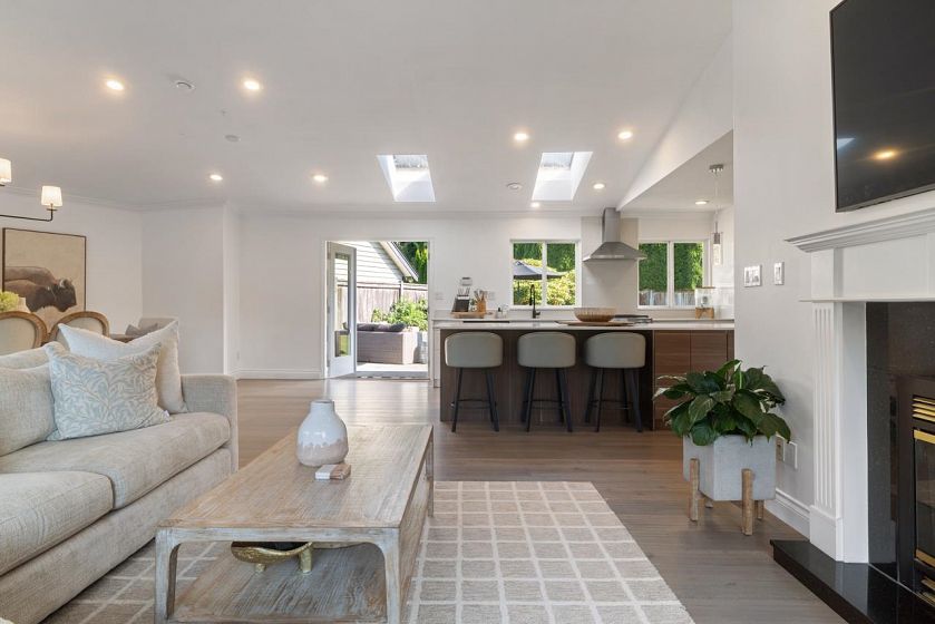 A rare offering in prestigious Sunset Gardens, a 5-bedroom oversized rancher set on a prime sunny corner lot. In this sought-after enclave, neighbours connect, children ride bikes on flat streets, & the mountains provide a stunning backdrop. With over 2,000 sq ft of renovated, move-in ready space, this home offers the ease of one-level living with room for family, guests, & gatherings. Entertainers will love the spacious open concept kitchen, dining & family room. Retreat to the primary suite with walk-in closet & luxurious ensuite with a soaker tub. Enjoy a private yard with space to play, a freshly painted basketball court, and a double garage with bonus storage attached. Steps to Cleveland Elementary and Handsworth Secondary, this is a truly unique place to call home. Welcome Home.