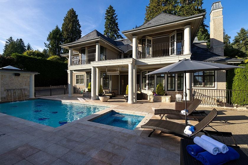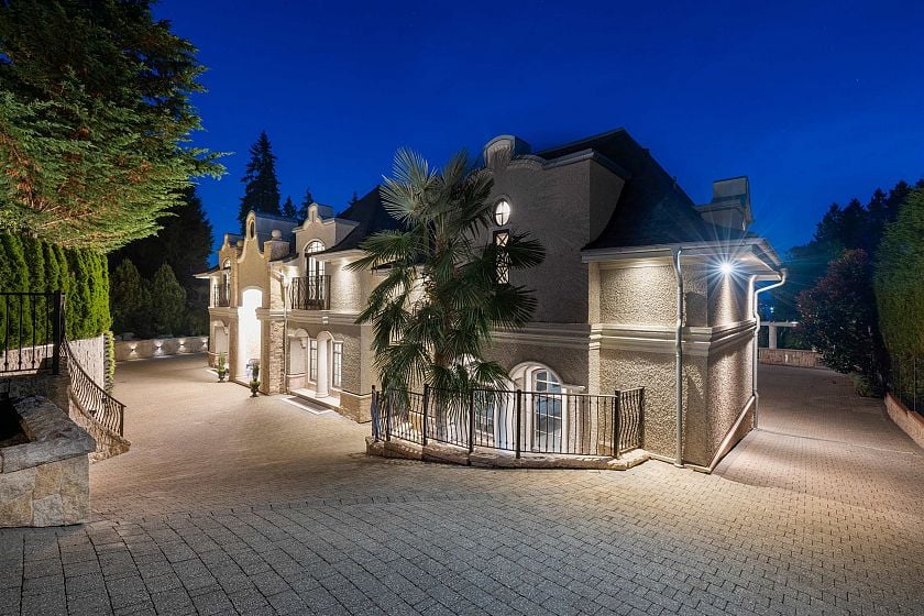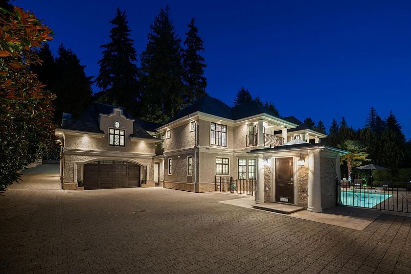 Magnificent European Chateau in Prestigious Altamont. A Marque Thompson–designed gated estate, this 6-bedroom, 8-bath residence blends European elegance with modern sophistication. Grand formal rooms, soaring ceilings & a handcrafted marble staircase set an opulent tone. The chef’s kitchen with Sub-Zero, Wolf & Miele appliances plus WOK kitchen opens to a resort-style backyard with swimming pool, Jacuzzi, firepit & pavilion. Upstairs, the primary suite is a spa retreat, with marble finishes, rain shower, freestanding tub & boutique-style walk-in. The lower level features a theatre, wine cellar, gym, sauna & nanny quarters. Enhanced with smart automation, radiant heating & biometric security, this estate defines luxury living in one of West Vancouver’s most prestigious enclaves.