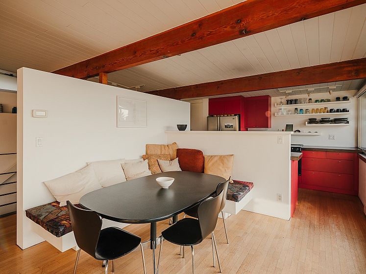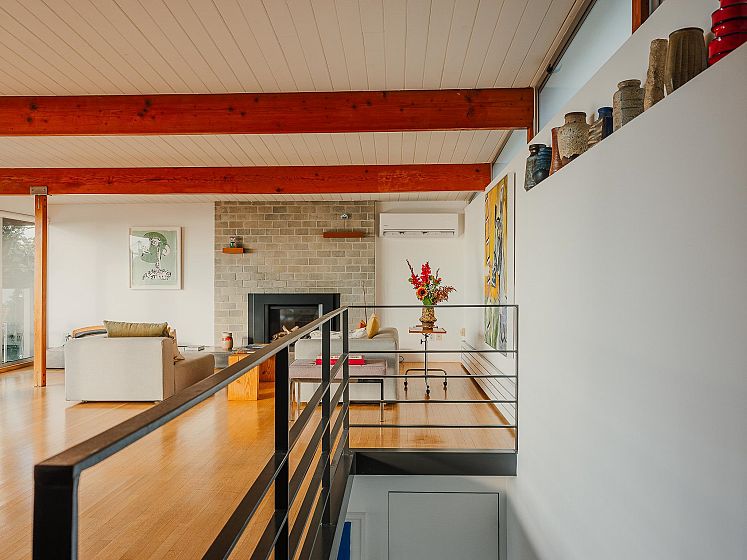Perched above Vancouver’s harbour with panoramic views of downtown, Stanley Park, and the North Shore mountains, the H.H. Pitts Residence (1961) is a rare example of post-and-beam modernism in Hastings Sunrise. Designed by Robertson, Kolbeins, Teevan & Gallaher, the home features an open upper level with living, dining, and kitchen framed by a wall of glass, while two lower bedrooms open to a private pool deck. Lovingly restored and carefully maintained, it retains its architectural clarity with thoughtful updates, including a converted garage studio with skylights and concrete floors. A singular presence along Wall Street’s “Golden Mile,” the residence reflects both the history and enduring livability of Vancouver modernism.