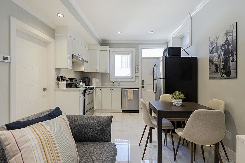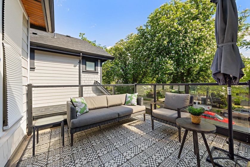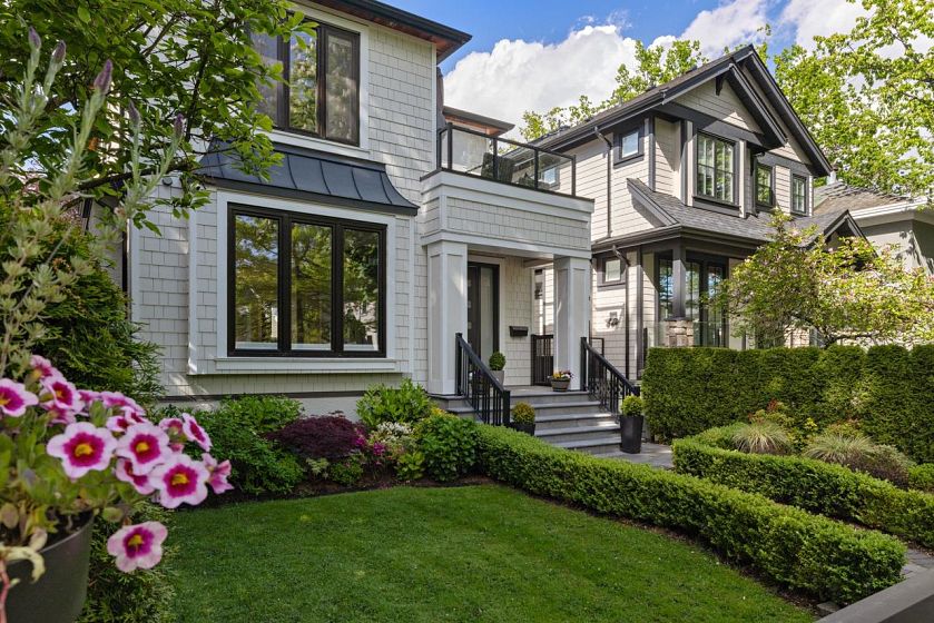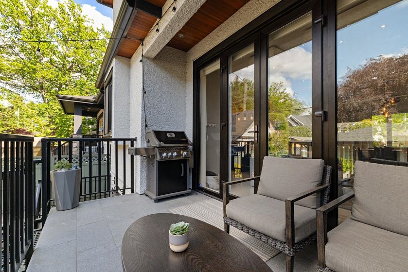 Stunning Kitsilano Residence. This beautifully crafted 2,947 sq. ft. home spans three levels, featuring custom millwork throughout, air conditioning, HRV, and radiant in-floor heating. The main floor boasts a chef-inspired kitchen with premium appliances plus a separate prep kitchen. Upstairs, you’ll find three spacious bedrooms, each with its own ensuite and two with private balconies. The primary suite feels like a luxury retreat with a spa-style ensuite complete with a jacuzzi and steam shower. The lower level offers a bright, legal 2-bedroom suite along with a media room—perfect for family or guests. Unbeatable location: steps to transit, grocery stores, community centre, top schools, and the upcoming SkyTrain station.