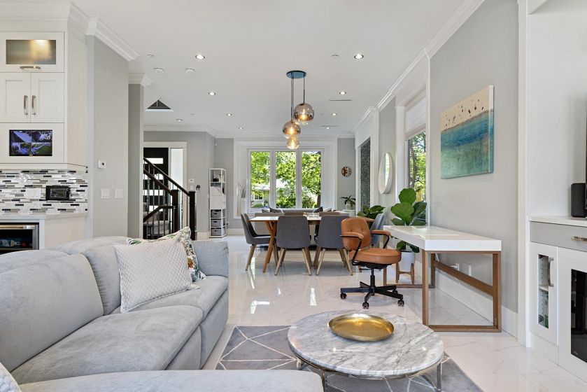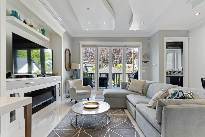 Stunning Kitsilano Residence. This beautifully crafted 2,947 sq. ft. home spans three levels, featuring custom millwork throughout, air conditioning, HRV, and radiant in-floor heating. The main floor boasts a chef-inspired kitchen with premium appliances plus a separate prep kitchen. Upstairs, you’ll find three spacious bedrooms, each with its own ensuite and two with private balconies. The primary suite feels like a luxury retreat with a spa-style ensuite complete with a jacuzzi and steam shower. The lower level offers a bright, legal 2-bedroom suite along with a media room—perfect for family or guests. Unbeatable location: steps to transit, grocery stores, community centre, top schools, and the upcoming SkyTrain station.