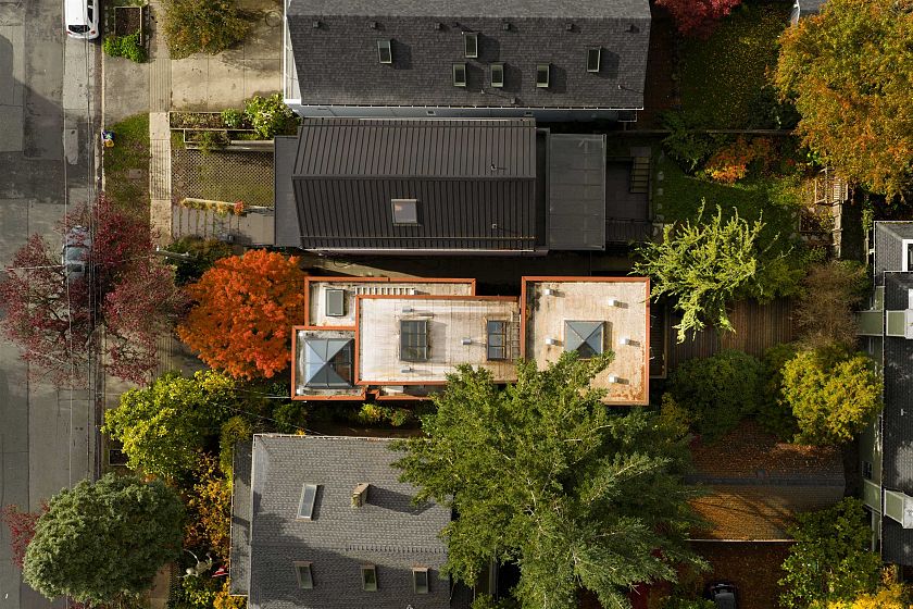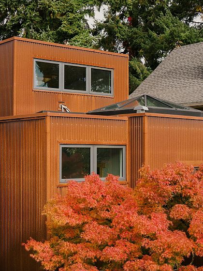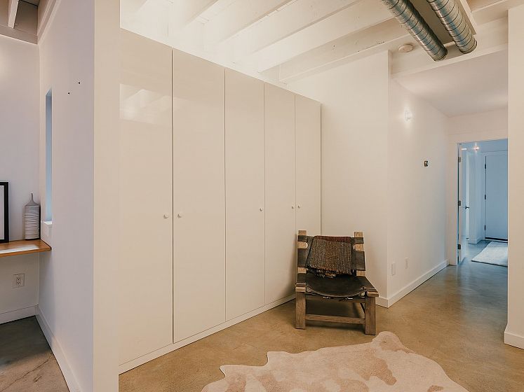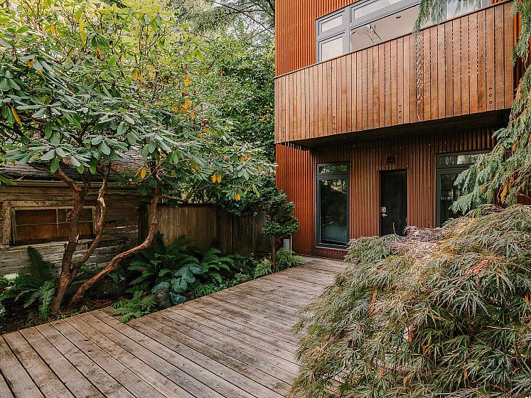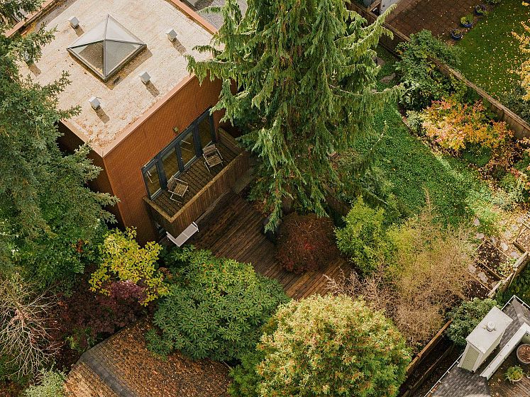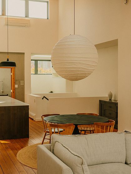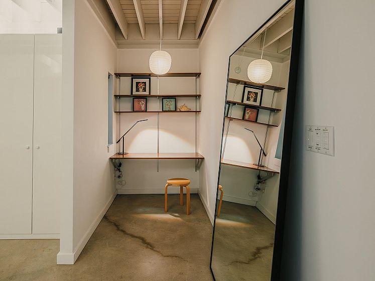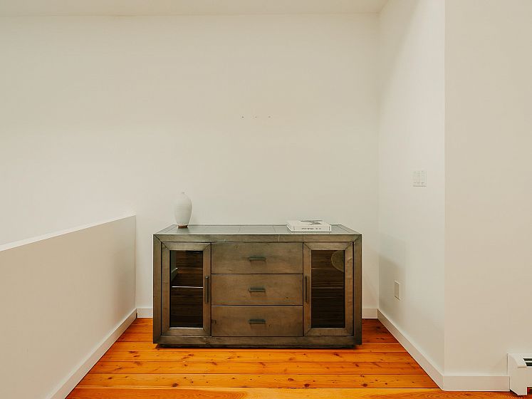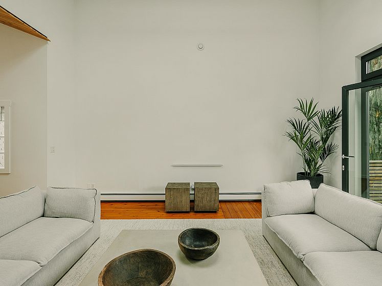 Architect-designed by Prix de Rome–winning architect A.A. Robins, this modern residence sits discreetly just off Main Street. Clad in corten steel, the home features soaring 25-foot ceilings, clerestory windows, and five skylights that flood the loft-like interior with natural light. Heated concrete floors and high-efficiency systems—including a heat pump, A/C, and HRV—ensure comfort with low maintenance. The flexible layout offers a spacious primary suite, two office nooks, and a convertible study and loft. A heated garage adds convenience. Recent upgrades include the roof, plumbing, kitchen, boiler, windows, and EV charger. High-end appliances by Miele, Bosch, and Liebherr pair with designer lighting from Artemide, Bocci, and Akari. Steps to everything—yet unlike anything.