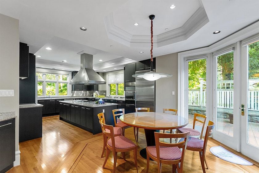First Shaughnessy Classic. Totally rebuilt (1992) 8000+sf mansion situated on a massive 18,342 sq. ft. corner property on Matthews @ Pine. This stately 4-level home offers impressive principle rooms on the main; 4 bedrooms on the 2nd floor all with ensuites baths; the 3rd level offers a Japanese tea room, 2 extra tatami bedrooms and an outdoor Onsen (Japanese style hot tub) Oasis. Basement boasts a huge rec rm, an indoor pool and 1 extra bedroom. High ceilings on all levels. An elegant English Tudor style mansion with elevated oriental fusion elements.