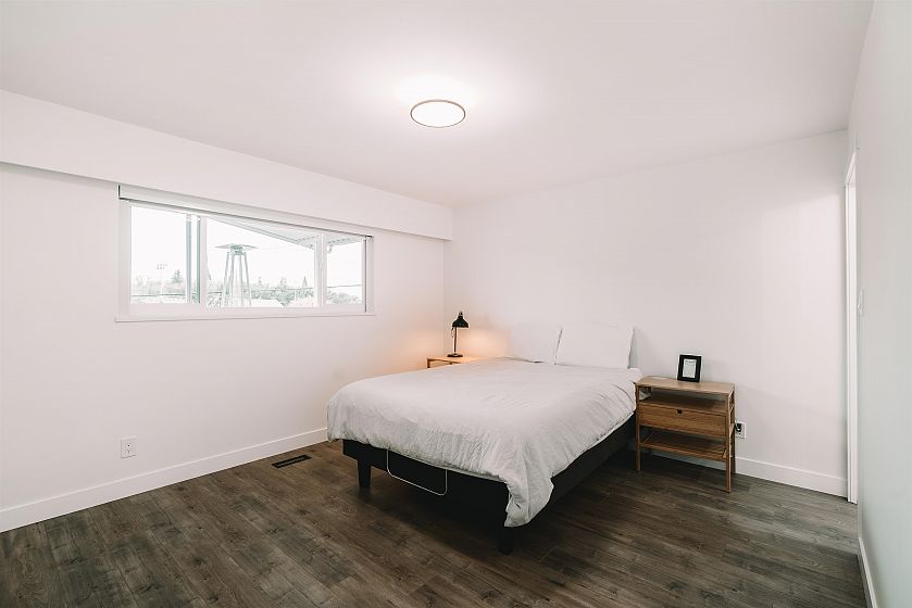 Welcome to 5885 Sherbrooke St., a beautifully renovated Vancouver Special in the Knight neighbourhood East of Fraser. Updates with permits include redesigned upstairs kitchen with some structural upgrades, partial new plumbing & electrical, bathrooms, flooring, ceilings, & high efficiency heating & hot water. The bright South facing kitchen leads to spacious dining area & living room. 3 bedrooms upstairs are separated creating privacy, & the primary includes an ensuite & walk in closet. The lower level features 3 bedrooms, 1 for the main home, currently used as rec room, & 2 as part of a suite with full kitchen, laundry. Requires a separate entry through the attached 2 car EV ready garage. Steps to Memorial South Park & close to schools, transit, & shopping. Note, green grass AI generated