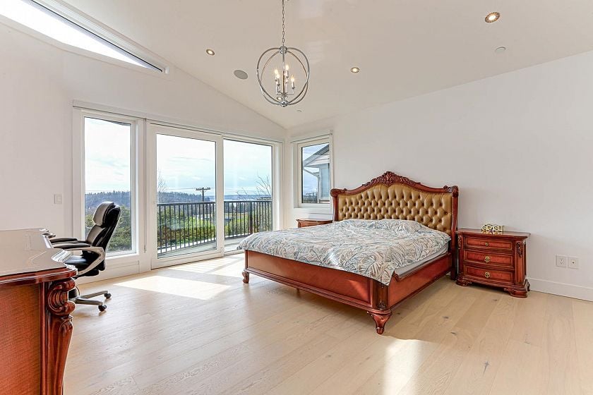 Solid Contemporary Residence with Breathtaking Views of Lions Gate, Downtown Vancouver, and Stanley Park. This meticulously crafted home offers exceptional quality and attention to detail throughout. Situated on a flat, gated driveway just one minute from Park Royal, the property combines sophisticated design with functionality. The main level showcases an expansive open-concept layout, made possible by substantial steel support beams. Soaring ceilings, floor-to-ceiling windows, and exquisite imported tile flooring enhance the sense of space and light. The gourmet kitchen is outfitted with premium Miele, Wolf, and Sub-Zero appliances, complemented by a professionally designed WOK kitchen featuring a 6-burner Wolf range. Book your private showing today!