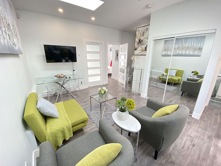 2-5-10 new home warranty. Total of 3,154 sqft (patios not included). High quality 6bd 3bath 3 level 2,540 sqft main house + 2bd 614 sqft laneway house. Main house has 1 bdrm and 1 full bath on main floor + 3 bdrm and 2 full baths upstairs. BSMNT has a legal 2 bdrm suite. Top appliances and quartz countertops. Laminate and tiles. Internet & cable in every room. Half of the house has A/C heat pump. Metal roof, hardiboard siding, double insulation and lifetime aluminum window/doors panels. Hi-tech Internet/cell phone monitored 3 sec systems and 4 cams. Electric supply for EV charger. Fenced backyard with artificial grass and decorations. Back lane access. Quiet street in Renfrew Heights upscale neighbourhood. Trout Lake park and Lord Beaconsfield elementary and park.