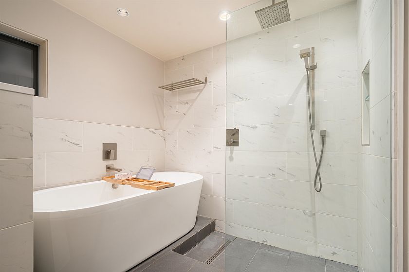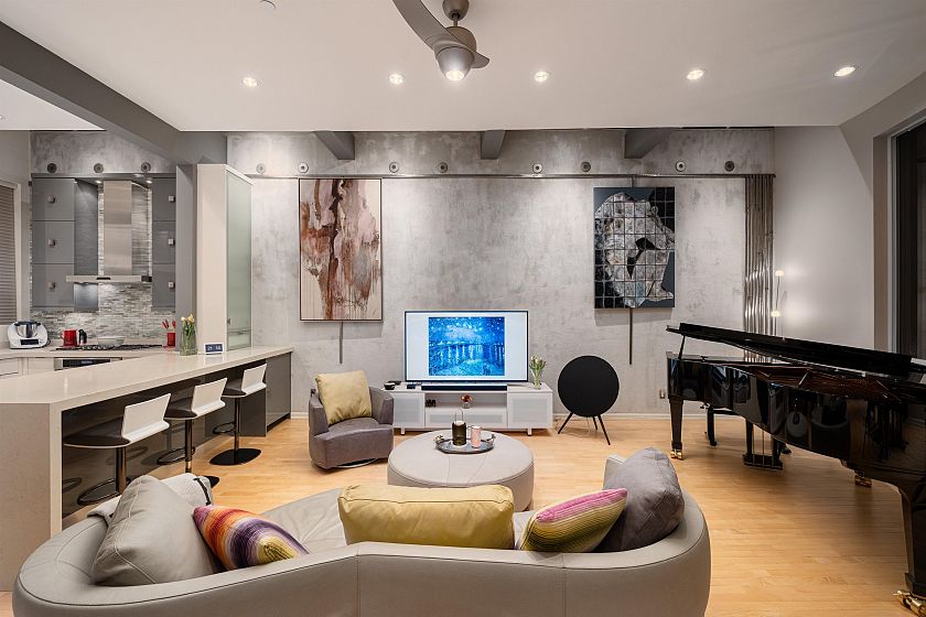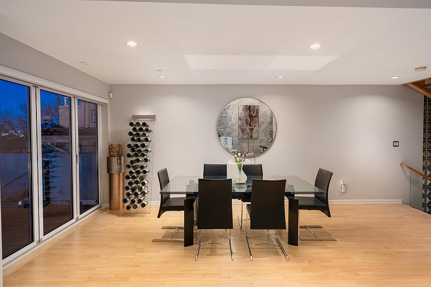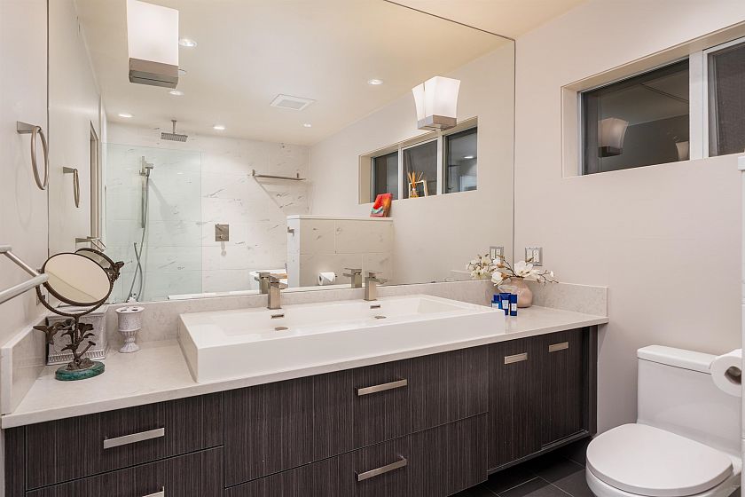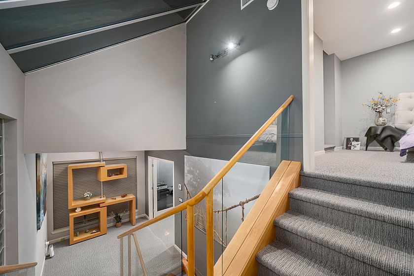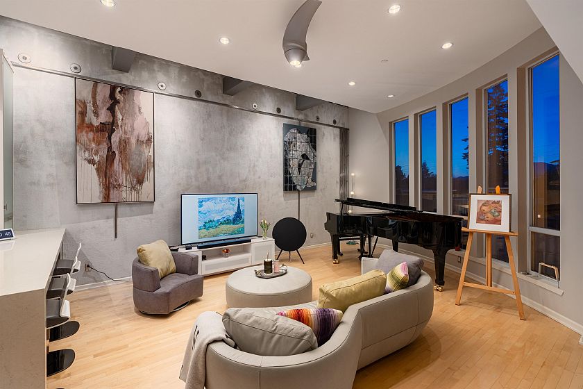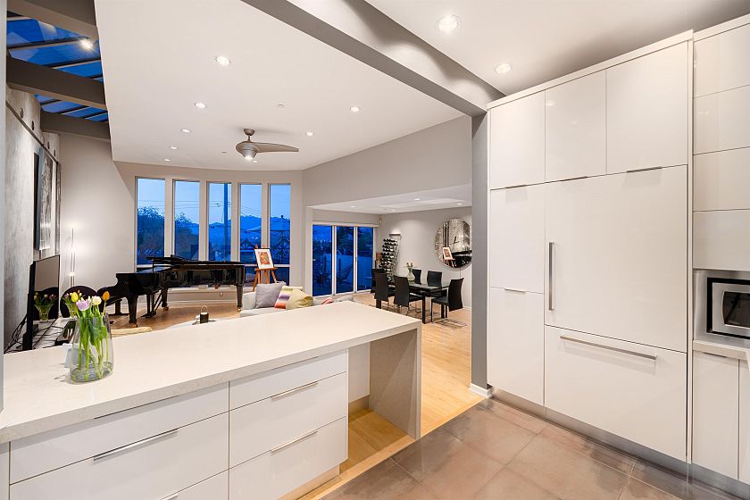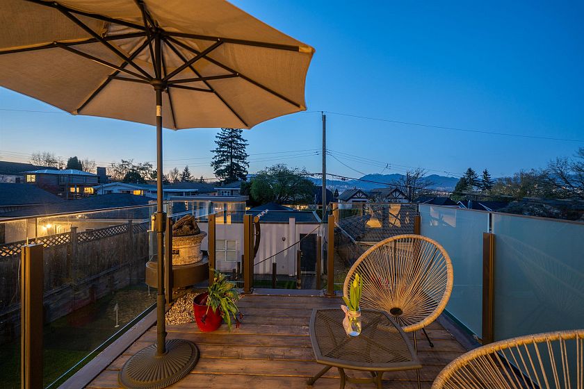 The Eagle's Nest. Behind the Japanese Zen garden entry stands the tallest house at the top of the hill, expansive views from all levels. 3 separate decks. Bright, airy and classy-modernist interior, lotsa skylights & sunshine. Better than new, tons of reno's in recent years. 5 level-split; Master + office up top, double height living/dining/gourmet kitchen/bbq deck, 2 more bdrms down, plus basement boasting a concrete soundproof movie studio/theatre. IBC boiler, and A/C, putting green in the backyard, storage system in the garage. Prince of Wales Secondary catchment; easy access to St. George's & UBC. Walking distance to family and pet friendly Balaclava Park.