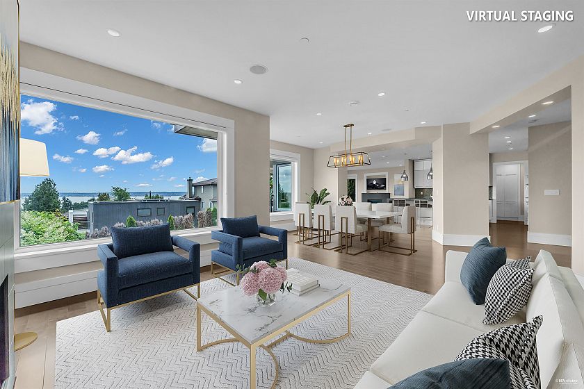 Perfectly positioned to capture sweeping ocean views, this beautifully designed 3-level home by Mason Kent offers exceptional indoor-outdoor living in the heart of Dundarave. The expansive main floor is filled w/ nature light & features high ceilings, rich hardwood flrs. A spectacular chef’s kitchen flows effortlessly into family, dining & breakfast nook. Step out onto the large covered deck & take in the panoramic water views. A striking floating staircase leads gracefully to three spacious ensuite bedrms, includs luxuy primary suite w/ private ocean view balcony. The lower level offers versatility with a private media rm, a fourth bedrm & a bright walk-out recreation area complete with a summer kitchen, perfect for guests or extended family. Just steps to schools, shopping & the beach.