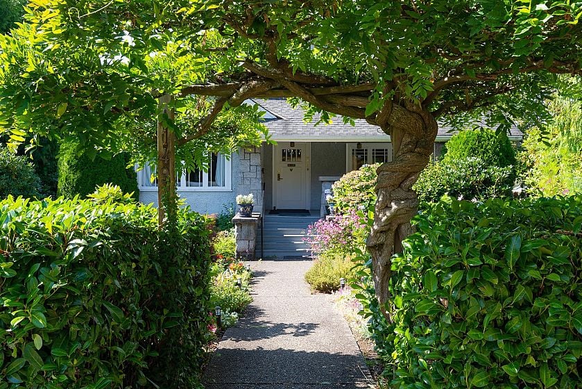 This Shaughnessy home sits amidst a lovingly manicured perennial garden on a quiet Westside street. Enter through the blooming Wisteria tree onto an extra wide 75' x 106' lot. Indoors, the original untouched woodwork and feature stained glass window showcases the historic craftsmanship and timbers that once graced the city. With 5 bedrooms 4.5 bathrooms, a large combined kitchen & family room, traditional cross-hall dining and living room, this property offers a ton of potential to remodel or redevelop. Downstairs there is a large rec room and a charming one bedroom suite with its own entry. Close to top rated schools: Shaughnessy Elem, Little Flower, York House & St. Georges. Steps to the Arbutus Club and the Greenway. R1-1 zoning permits multiple dwelling options. Viewing by Appointment.