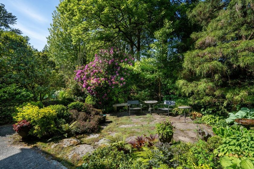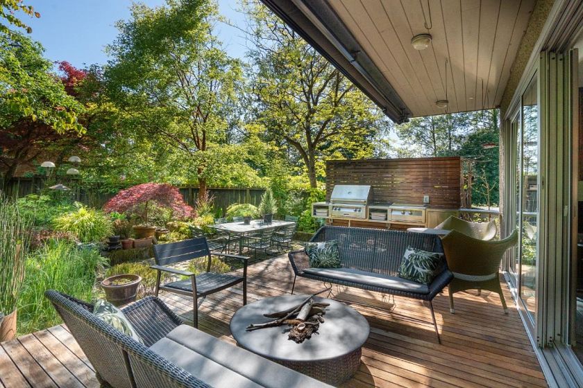 One-of-a-kind 3 bdrm, 4 bthrm home, with no direct neighbours, seamlessly blends character with contemporary design. Chef’s gourmet kitchen with dual Miele ovens, two dishwashers, professional gas range & full-size Sub-Zero fridge & Viking freezer is anchored by the expansive 15’ island. Macassar ebony cabinetry is a precursor to the inviting family room which opens onto a captivating al fresco dining terrace & built-in outdoor kitchen featuring BBQ, smoker, rotisserie, & high-intensity wok burner, all surrounded by luscious gardens and complete privacy. Primary suite offers a private balcony overlooking the landscaped grounds, generous walk-in closet & spa-style ensuite. 4 fireplaces infuse ambiance. The lush garden complete with Koi pond & waterfall provide a luscious, serene experience
