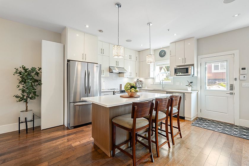 In the heart of Cedar Cottage is this charming 5 bed home that has everything you're looking for. Located on a tree-lined street & walking distance to everything, this is one of East Van's best locations. Offering all the charm of yesteryear but with the modern conveniences you expect. Enter the main level & take in the open plan featuring high ceilings, hardwood floors, a gas fireplace in the living room & spacious dining area. The chef's kitchen features stainless appliances, soft close cabinets & a large island topped with quartz. Upstairs are 3 generous bedrooms including the primary with a beautiful ensuite. Downstairs is a full height 2 bed suite with a private entry & sep laundry. Outside offers a private backyard, amazing veggie garden & a 1 car garage.