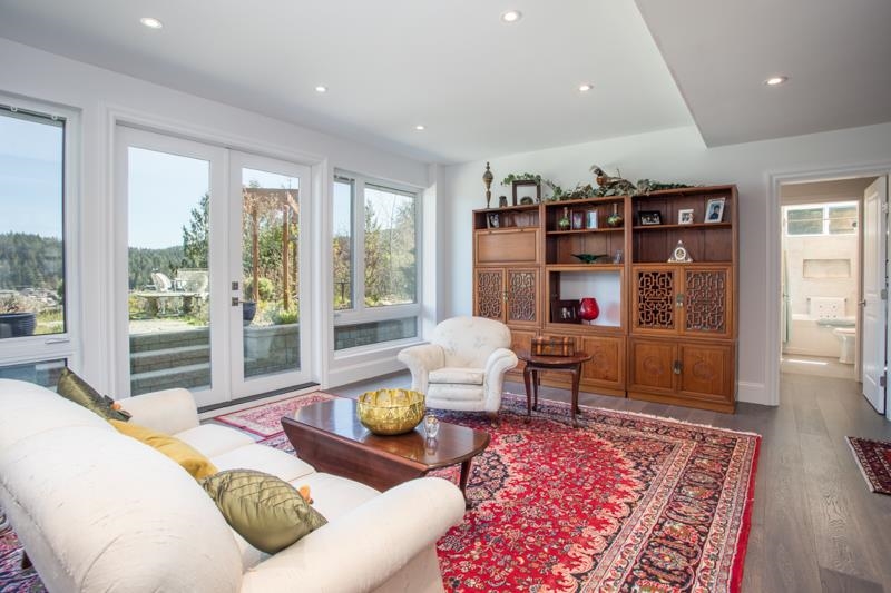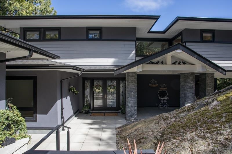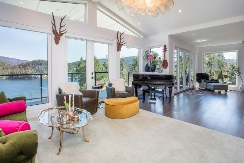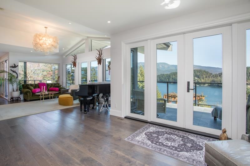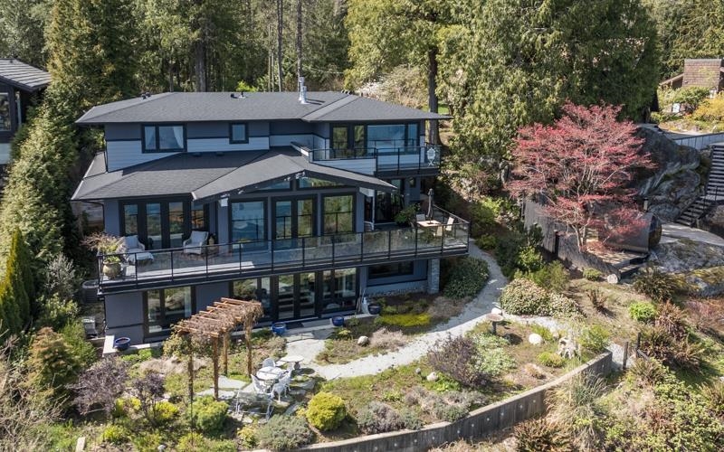 Contemporary design meets the untouched beauty of nature. Perched on a cliff, this 4-yr-old architectural gem offers breathtaking views up Indian Arm, seamlessly blending luxury with the serenity of the wilderness. The expansive, open-concept living space is anchored by a gourmet kitchen outfitted with Sub-Zero and Fisher & Paykel appliances—perfect for entertaining in style. Radiant in-floor heating and built-in A/C ensure year-round comfort, while an elevator provides effortless access to all levels. Each of the four spacious bedrooms boasts its own private ensuite. The lower level includes an office and an impressive, oversized library. This is more than just a home—it's a lifestyle. Enjoy the tranquility of a country setting, just 30 mins from downtown. By appt only. Call your realtor