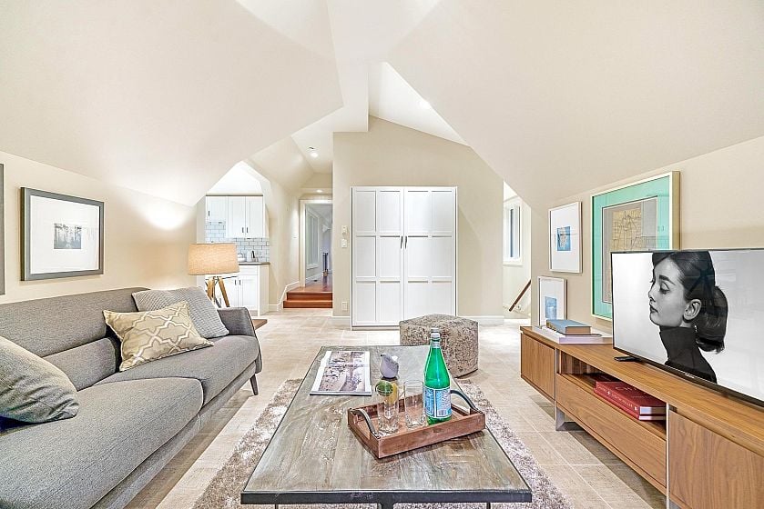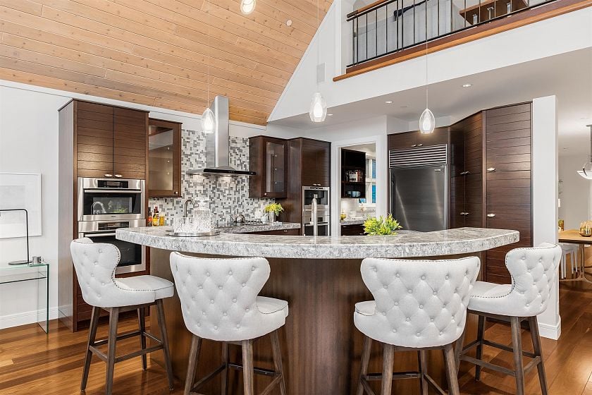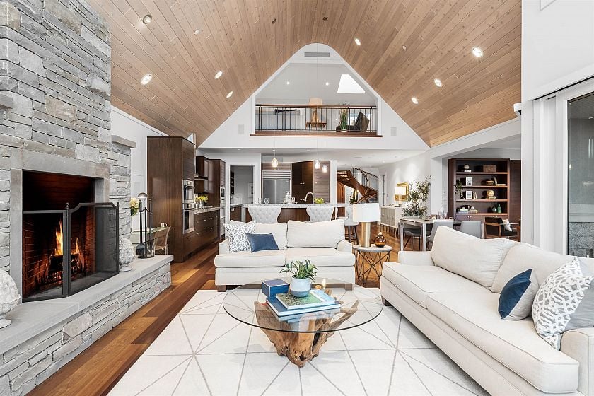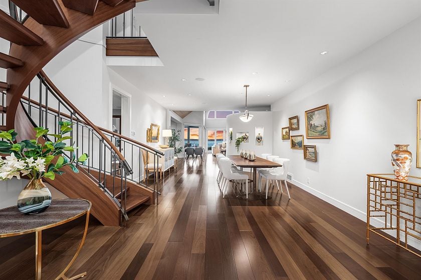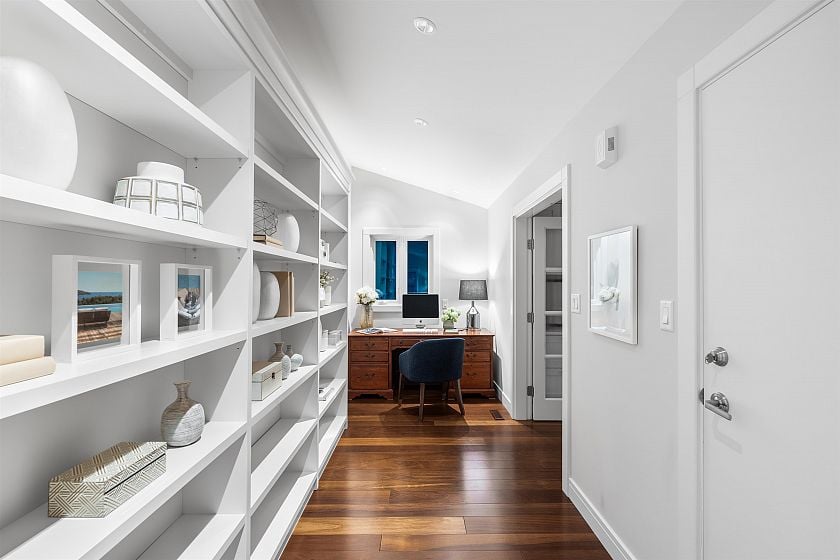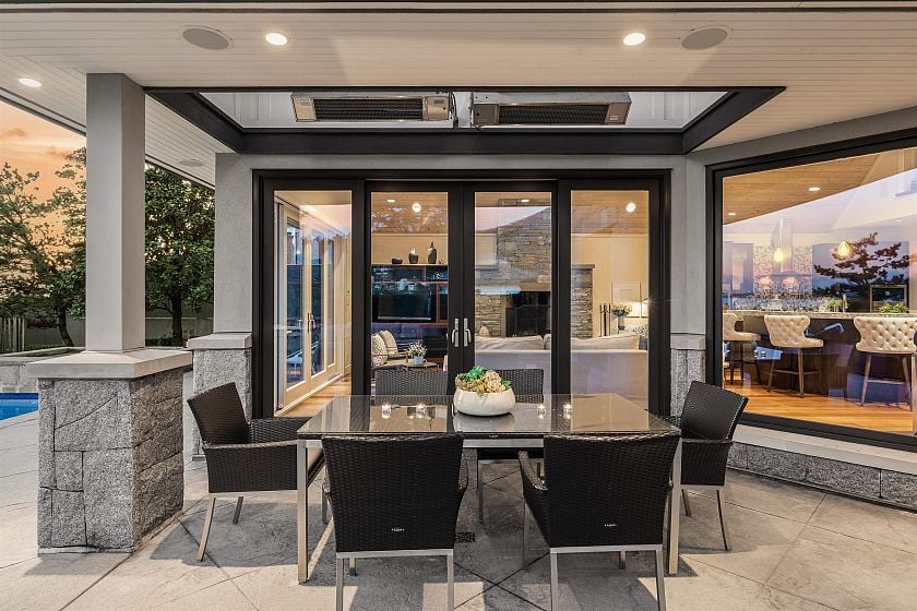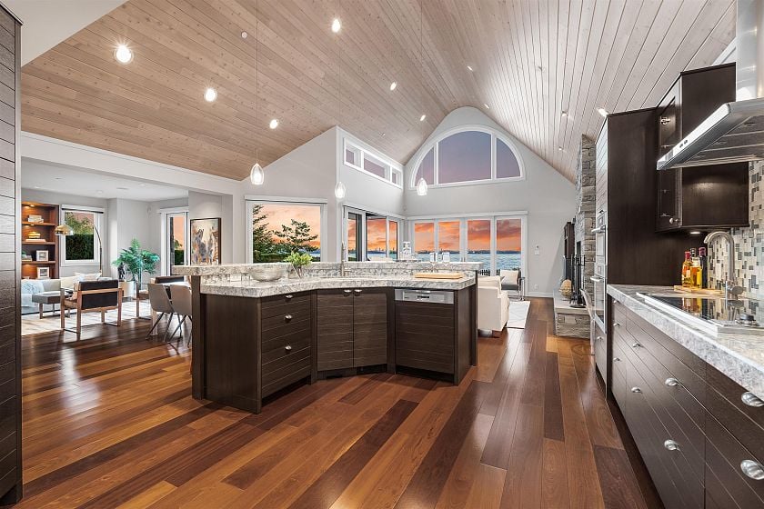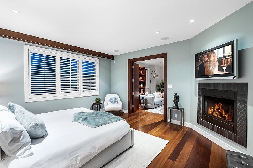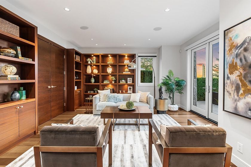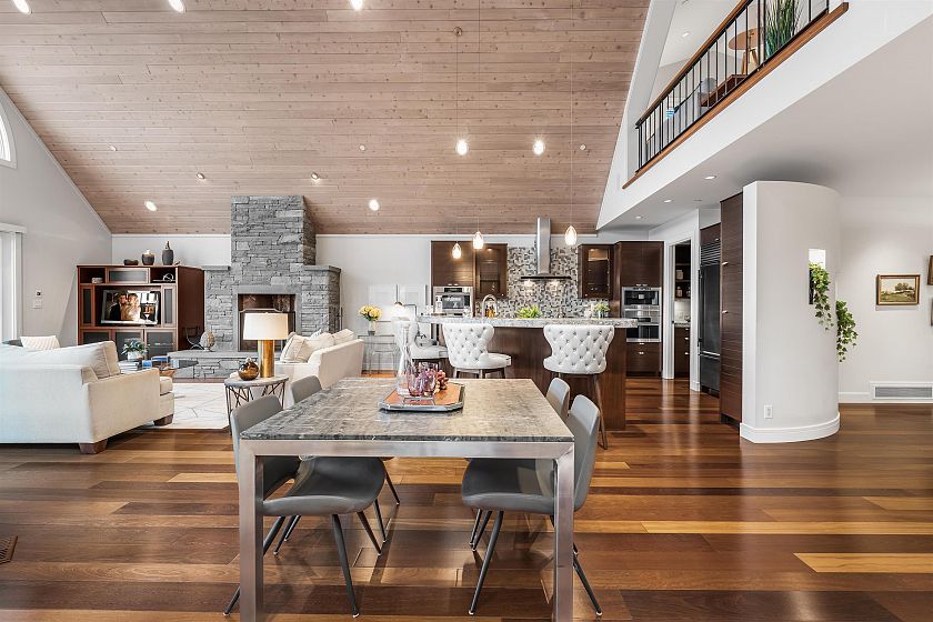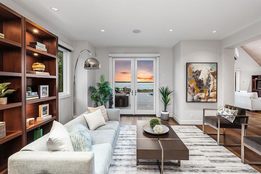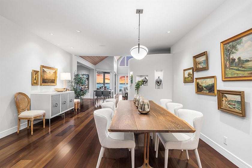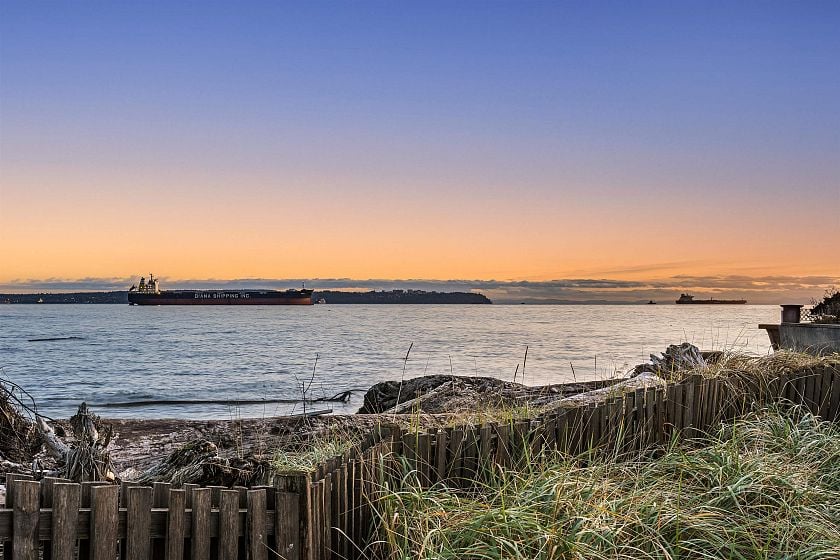 This magnificent beachfront residence is situated on a prized south facing property in West Vancouver’s sought after Lower Caulfield neighborhood. The architectural elegance with its beautiful exterior and impeccable landscape provides almost five thousand square feet of formal and informal living on two spacious levels. Enter into an impressive reception hall leading to entertainment size principal rooms, a private study, large gourmet kitchen with adjoining spice kitchen, daily eating area and generous family room providing a wonderful indoor outdoor lifestyle with direct walk-out access to a private view-side terrace, poolside entertainment area, fabulous heated swimming pool and level beach access. Additional features include air con, a private guest / nanny area and attached garage.