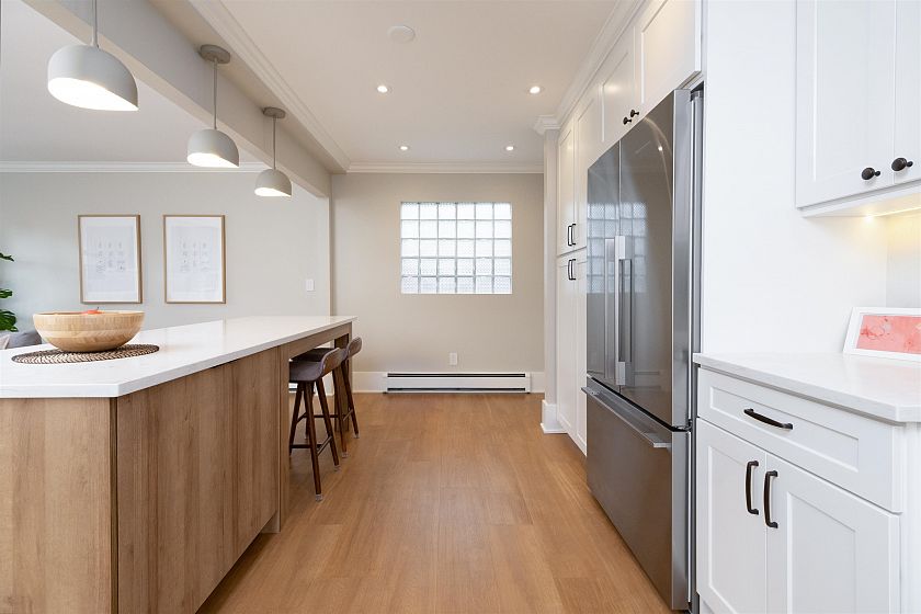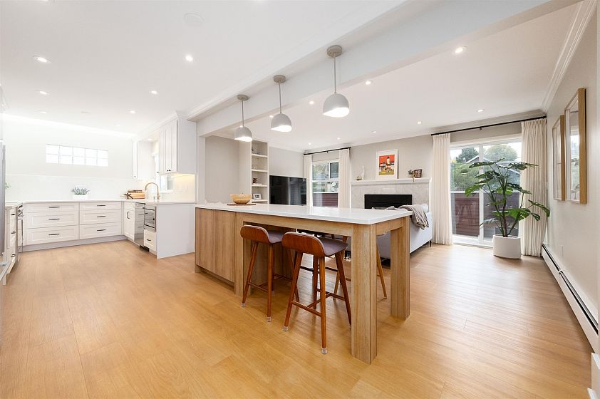 Beautifully updated and remodeled Pt Grey 3 bedroom plus den home. You'll love the street and quiet location. This Stuart Howard architecturally designed home offers living primarily on 3 levels with the main living offering spacious bright rooms and fully renovated kitchen and large family room. The living room overlooks (with its oversized windows) the tree lined street and gardens. Upstairs is a cosy den / home office which opens to a private roof top deck. The lower level which is actually the Garden level you'll find 3 bedrooms inc the Primary Bedroom with its Spa Like Ensuite and sliding doors out to the private intimate garden area. This move in ready home will not disappoint. Great location close to UBC, Pacific Spirit Park and W 10th shopping. Open Sat Oct 11th, 2-4.