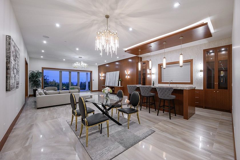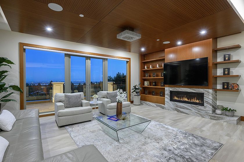Located in the heart of West Vancouver’s prestigious British Properties, this 7,289 sq. ft. luxury estate sits on a 15,020 sq. ft. lot. Gated entrance with convenient driveway, offering mountain and ocean views, plus a sunny south-facing backyard with great privacy. The home features 6 bedrooms, 7 bathrooms, double garage, high ceilings, grand foyer with chandelier, elevator, and a functional layout. Gourmet kitchen with wok kitchen, spectacular balconies for year-round outdoor living. The bright basement offers home theatre, wine cellar, sauna, steam room, gym, wet bar, and more. All bedrooms upstairs are ensuited. Equipped with radiant heating and A/C, this residence combines comfort, elegance, and modern convenience. Open house on Sunday 2-4pm, Nov. 2nd
