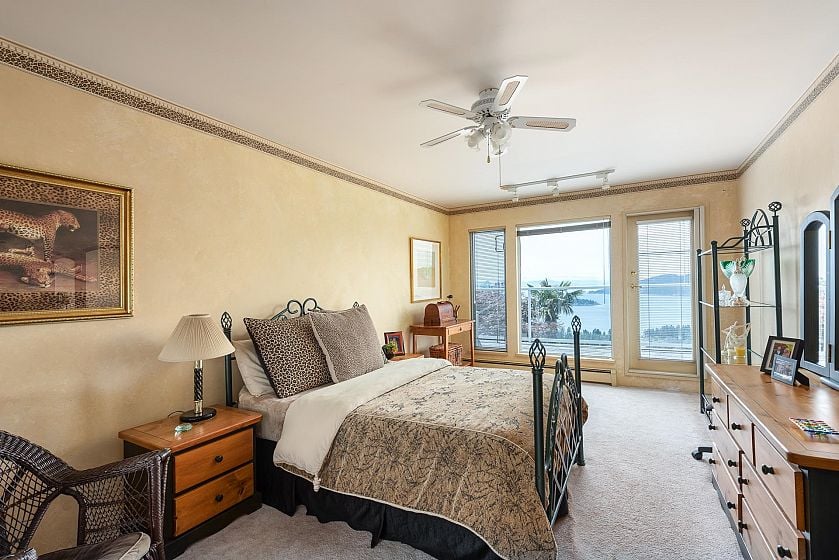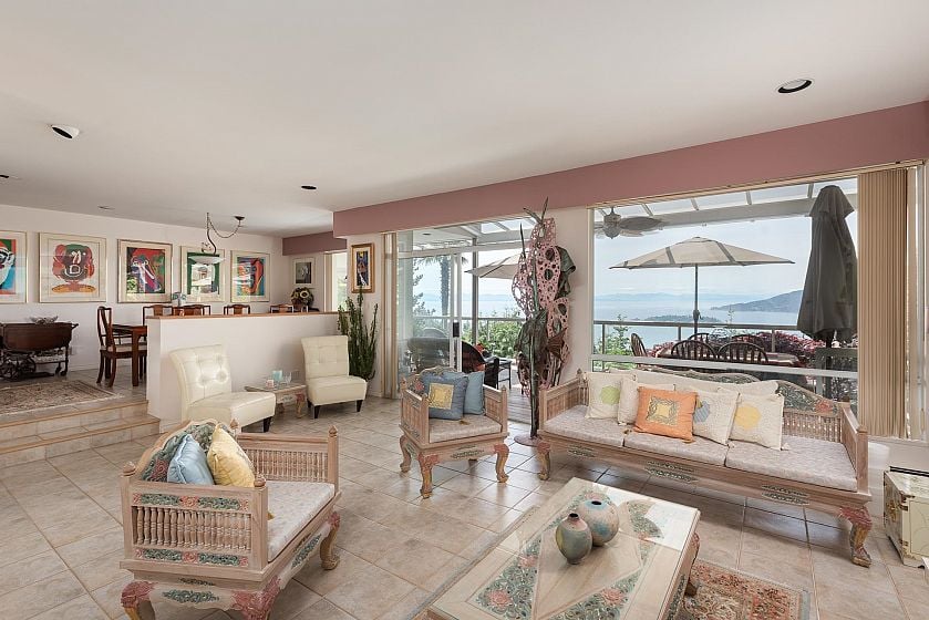 Situated in prestigious Cypress Park Estates, this custom-built one-owner home blends contemporary comfort with stunning ocean views. Expansive living and dining areas, an updated gourmet kitchen, and a family room open to covered decks and landscaped gardens—all overlooking the sparkling pool and sweeping westerly ocean views. The main level also offers a private office and guest suite, while upstairs features five bedrooms with decks, including a luxurious primary with spa-like ensuite. A spacious rec room on the lower level flows directly to the pool and hot tub, creating an ideal setting for family living and entertaining. With a level driveway, oversized double garage, and close proximity to top schools, Caulfeild Village, and quick highway access, this residence truly has it all.