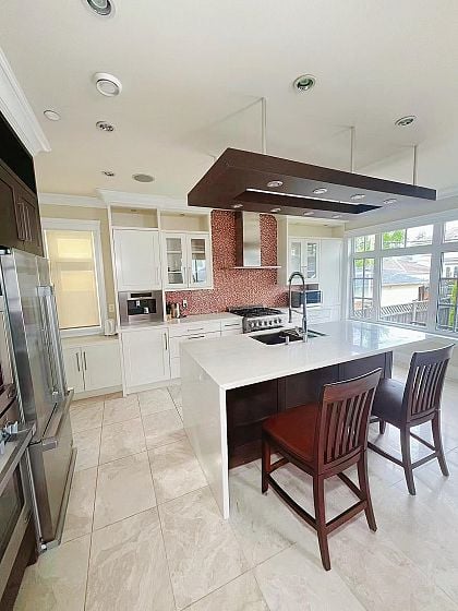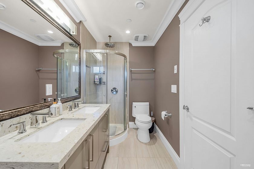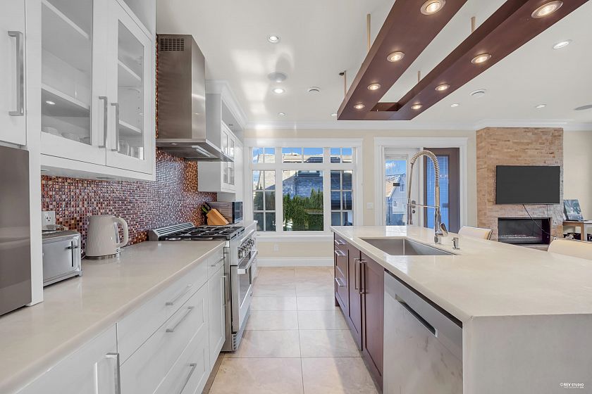 Gorgeous house located in nice quiet Arbutus area! This beautiful 3341sf home featuring total of 6 bedrooms & 6 bathrooms. This home offers the very best in design, construction, and finishing offering a much higher quality than comparable homes, including gourmet master-chef kitchen with high-end appliances & white marble counter, Bosch W/D, Grohe fixtures, Viessman boiler, designer lighting, B/I Vacuum, full security system w/4 cameras, solid stone flooring/steps/counters/siding throughout, etc. Above is a principal bedroom with ensuite ,2 more bedrooms & laundry.Downstairs has living space & a bedroom & a den for the main house, plus a legal 1 bed suite.There's even more w/ 1 bed laneway & 1 car garage &1 open parking.You can live in a stunning house and make passive income all at once.